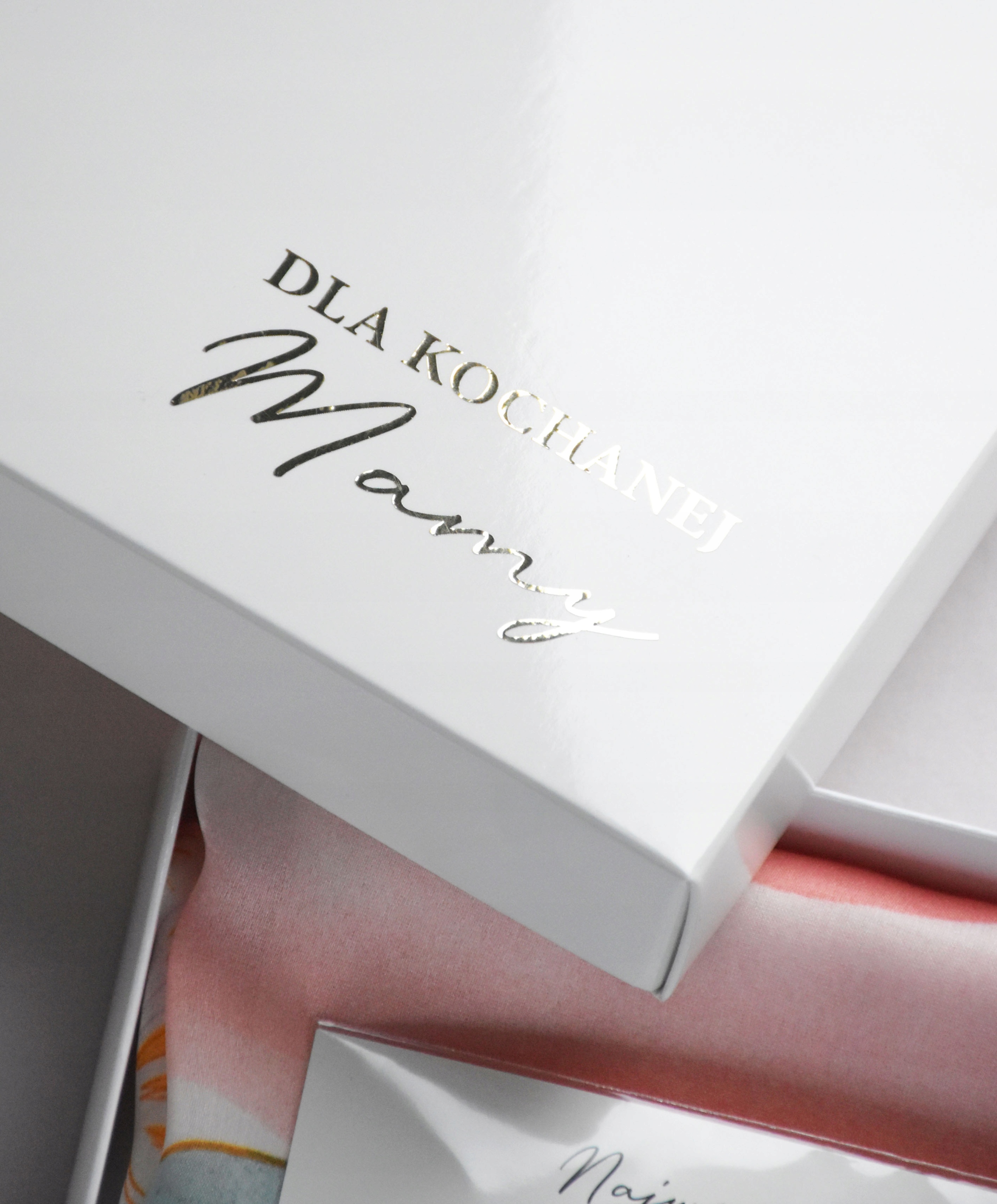 - Элегантную белую коробку с золотая надпись с выбранным узором, напр. «ДЛЯ ДОРОГОЙ МАМЫ»