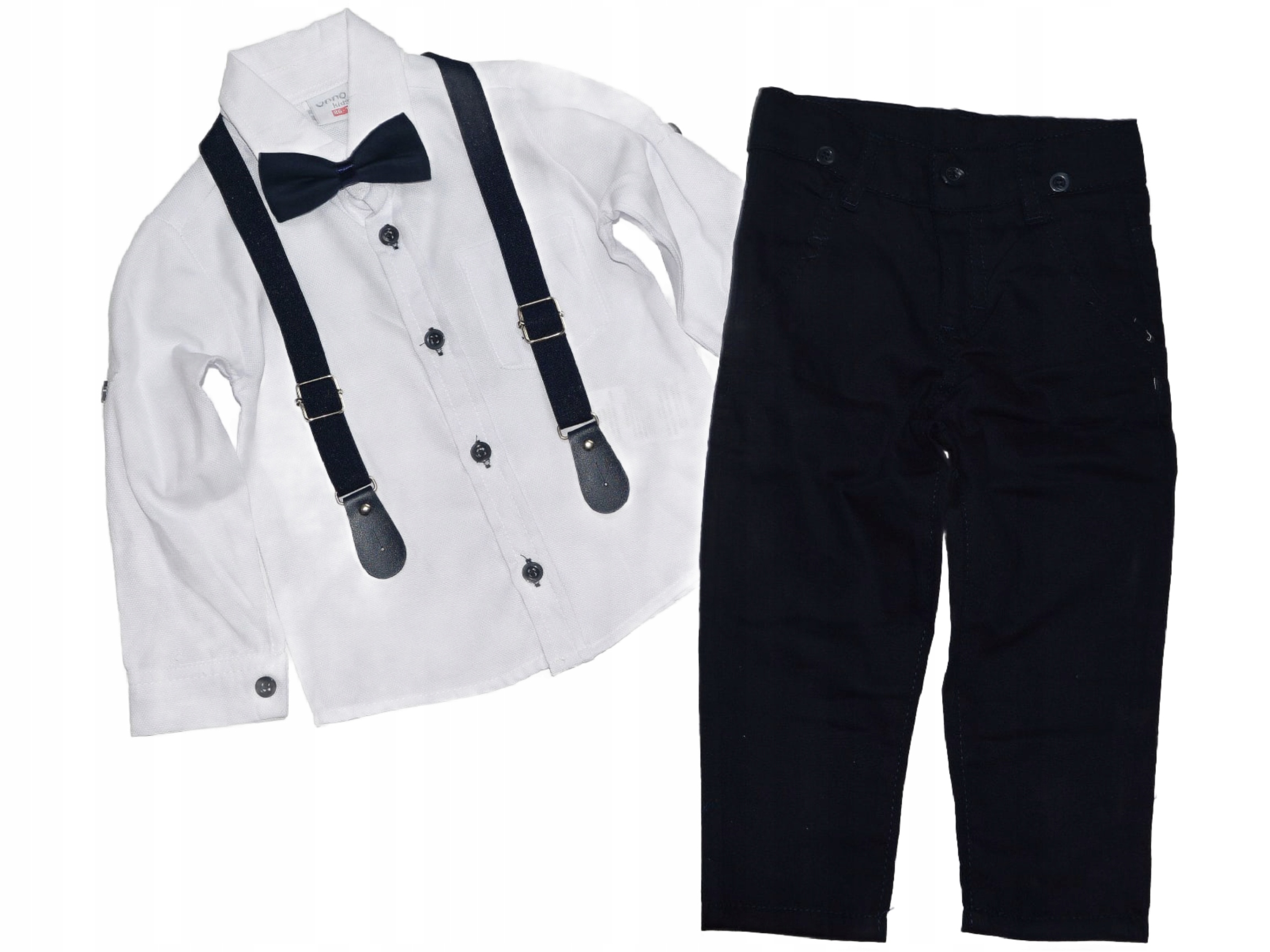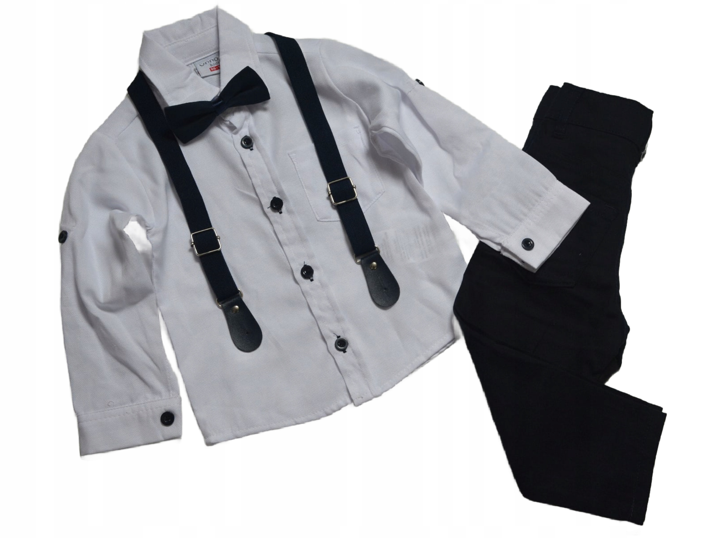 4 детали: галстук-бабочка на резинке, подтяжки, брюки и белая рубашка