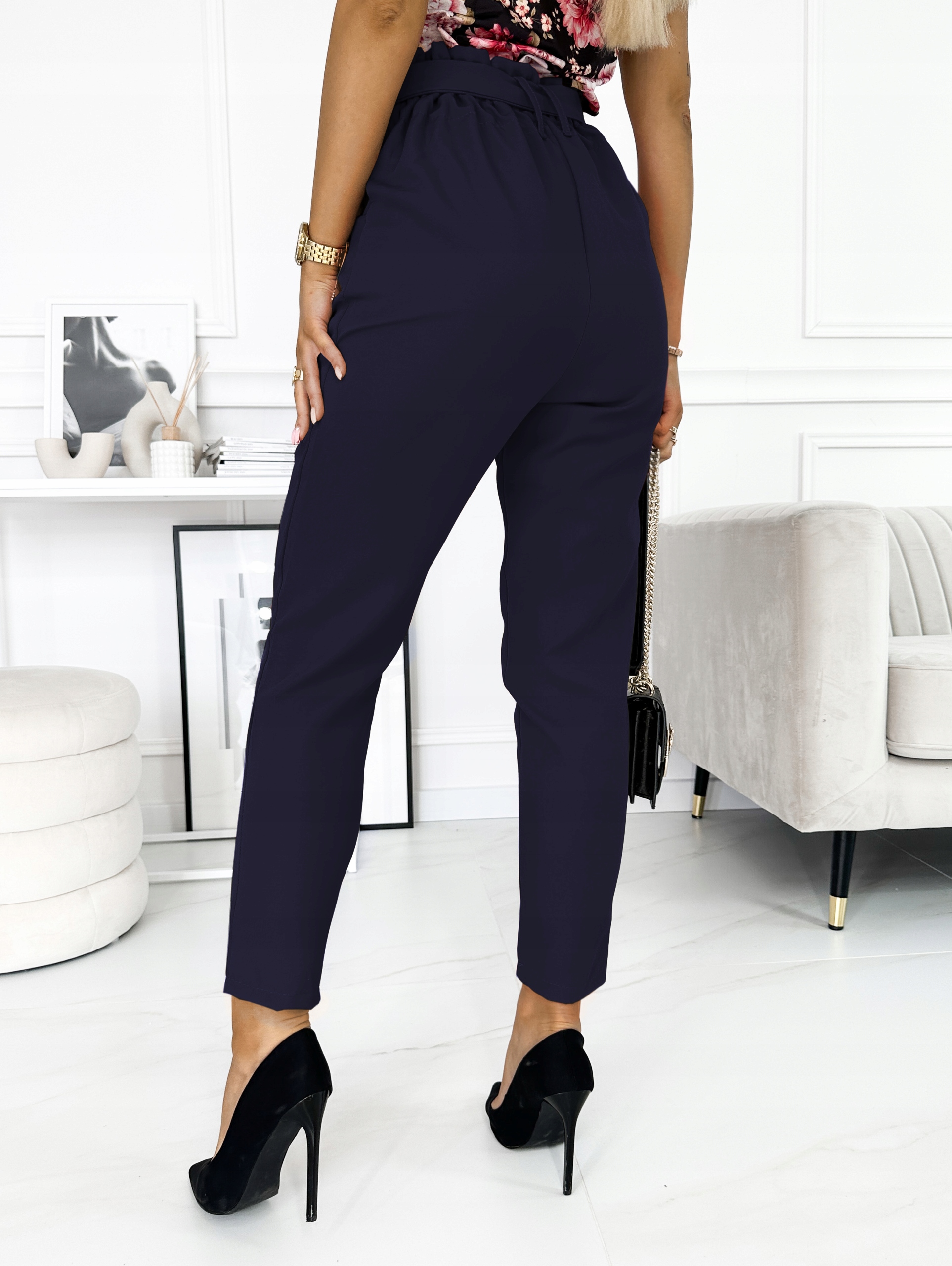 Брюки присборены на талии в стиле модного бумажного пакета