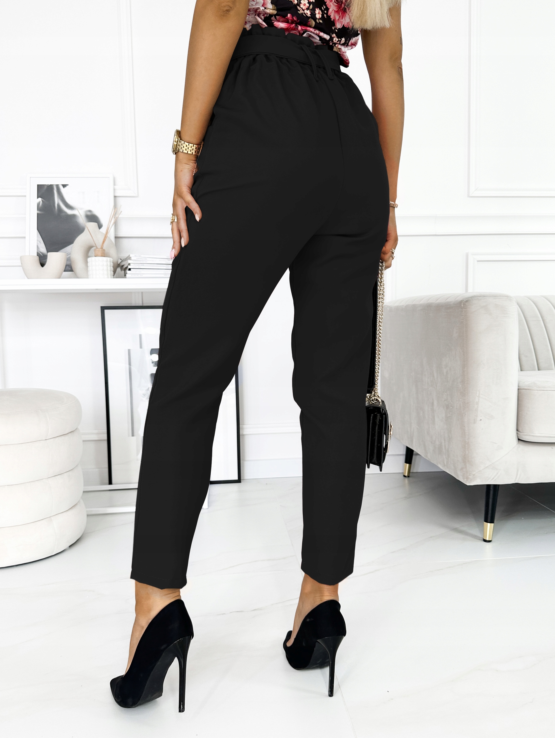 Брюки присборены на талии в стиле модного бумажного пакета