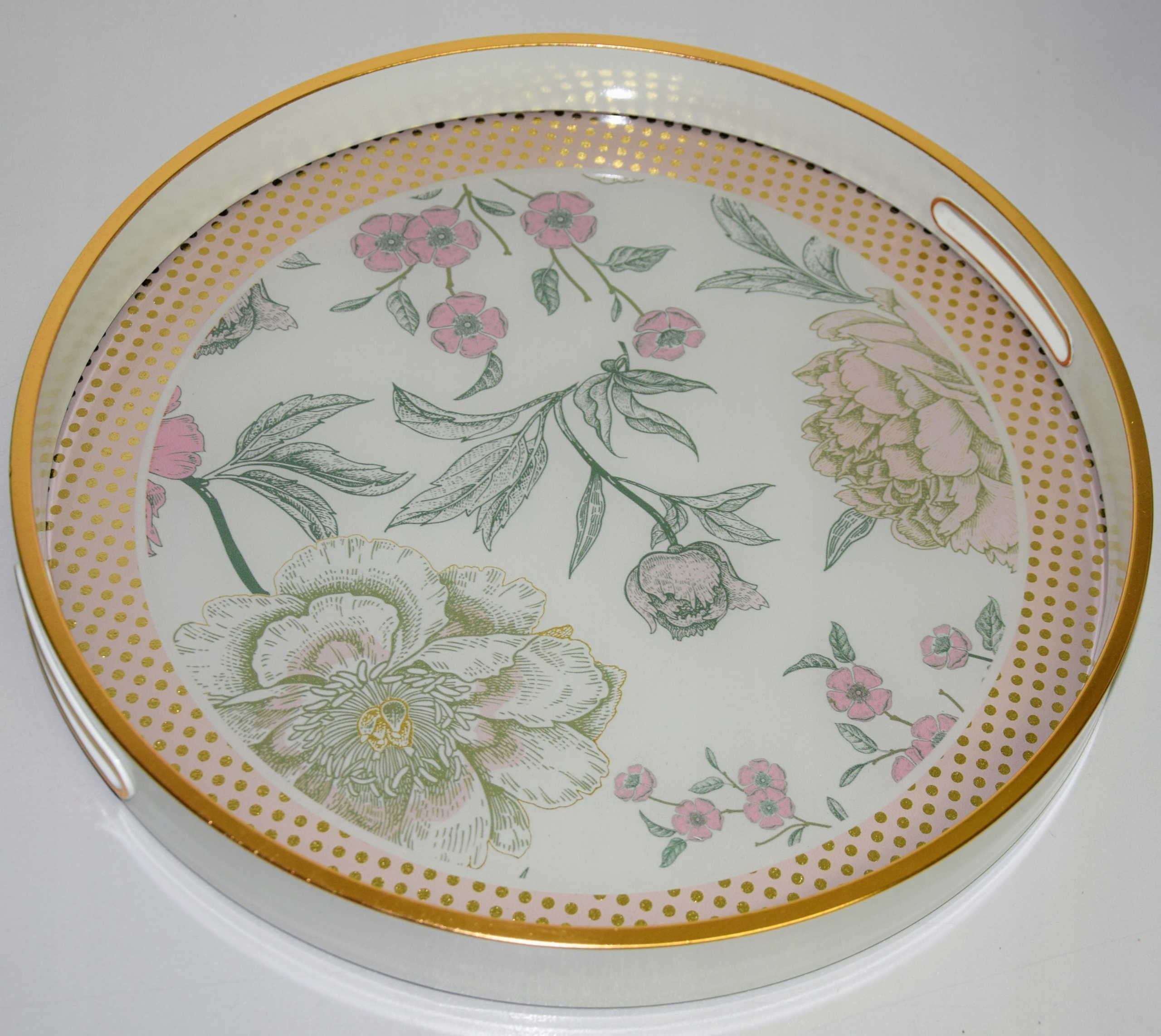 Элегантный круглый поднос с цветами
