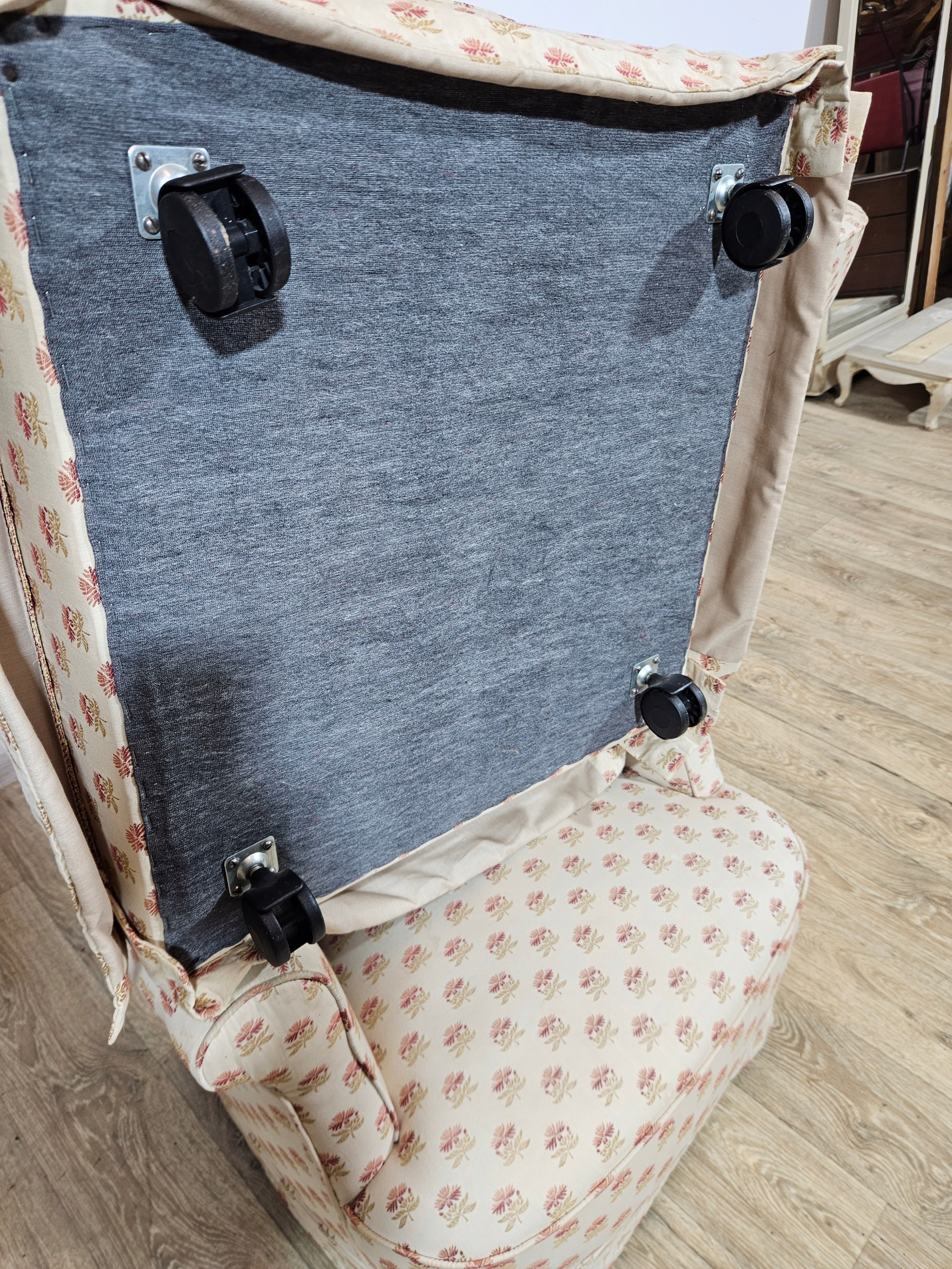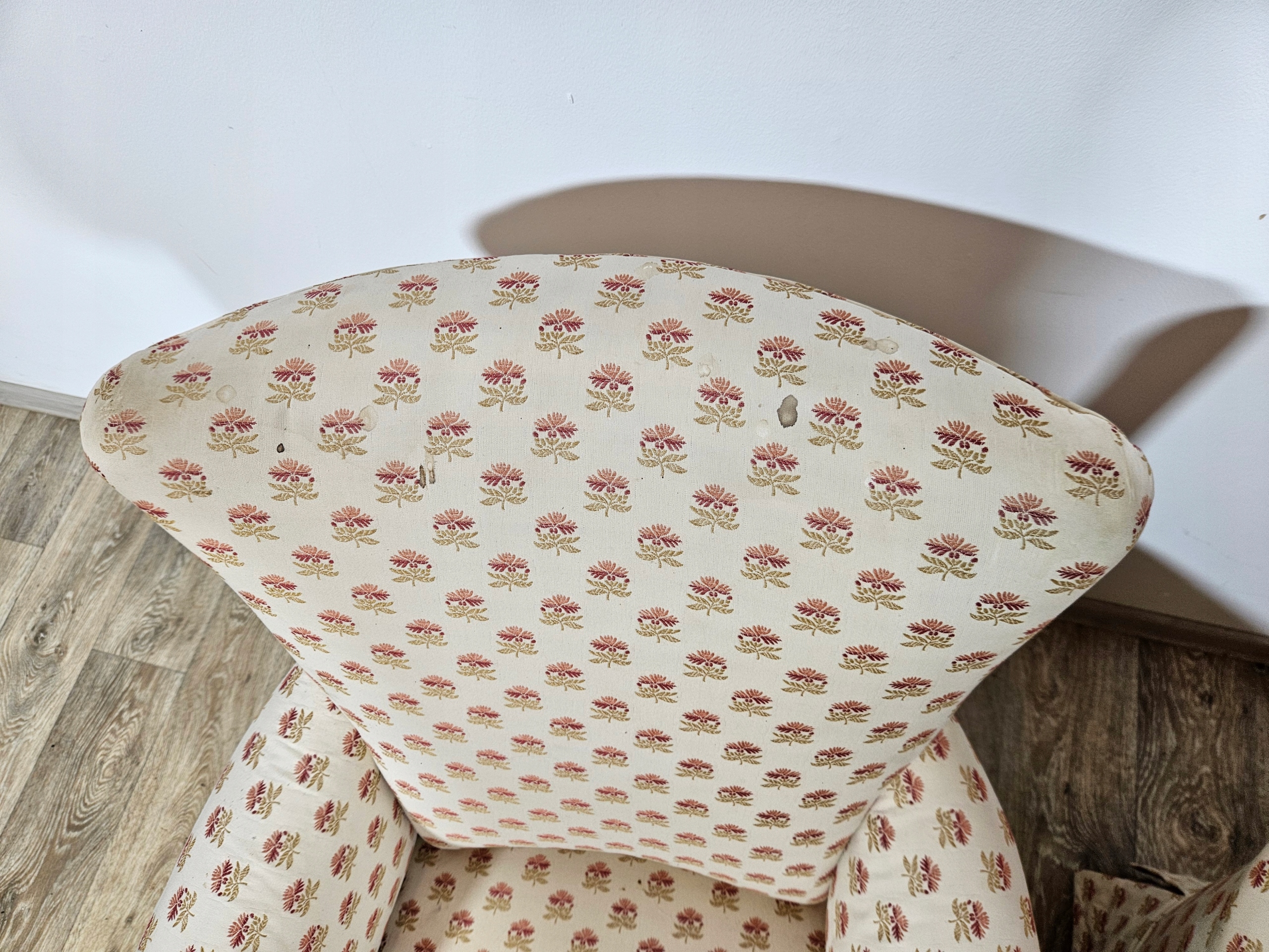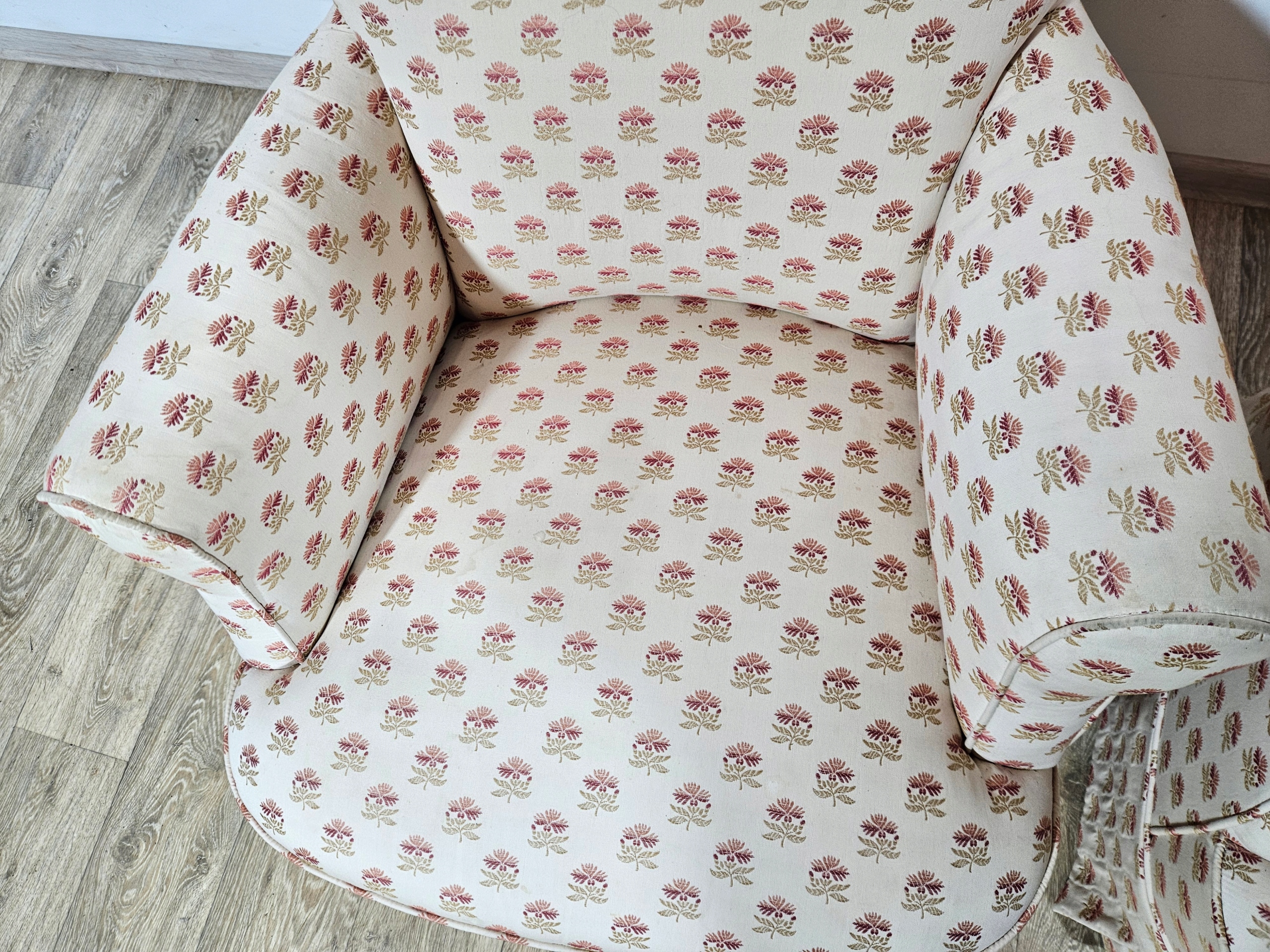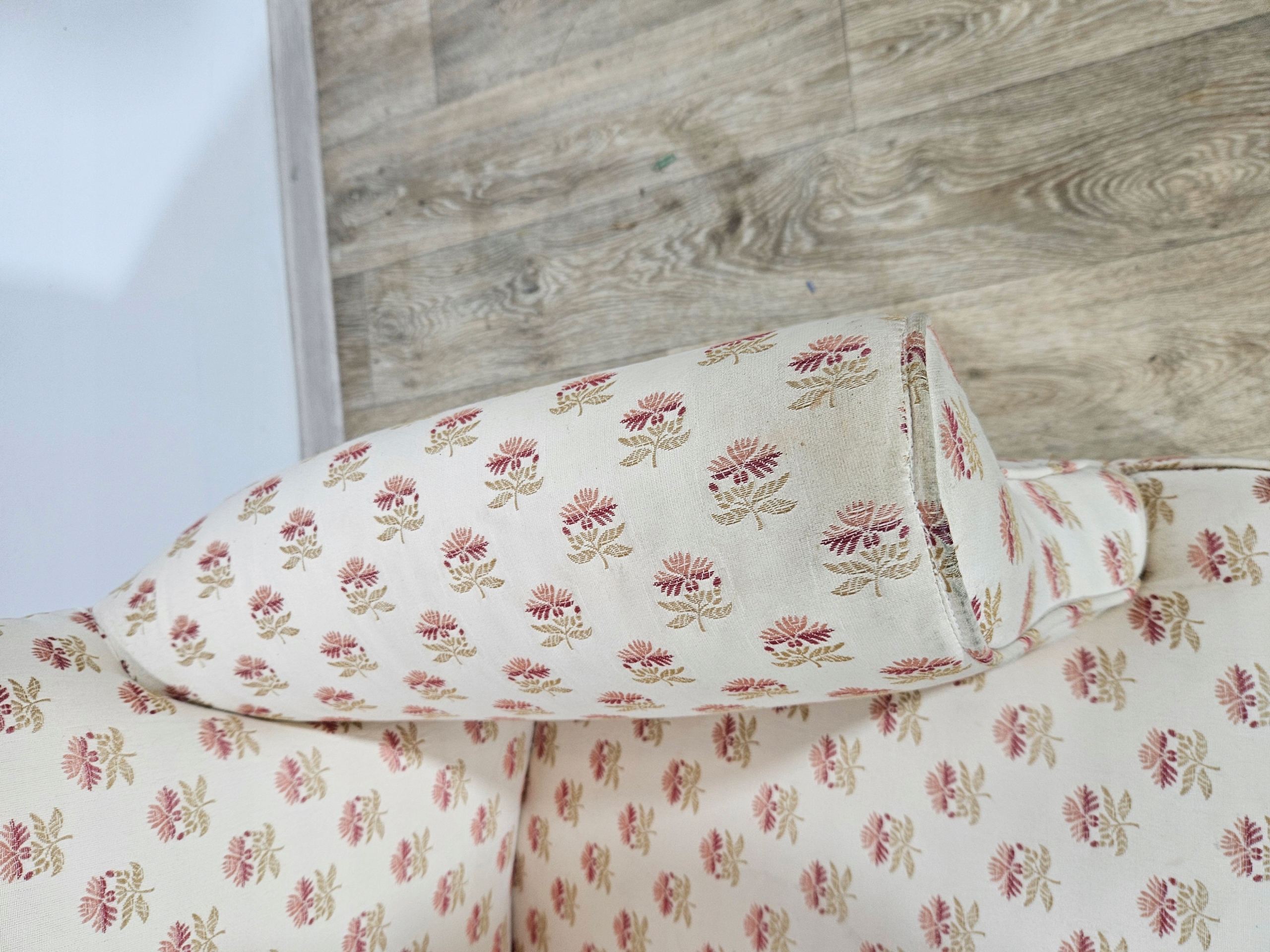 Мебель обита высококачественной тканью светлого кремового оттенка, покрытой очаровательным регулярным цветочным узором. Этот дизайн вне времени и легко вписывается в стили шебби-шик, кантри-француз или традиционный стиль.