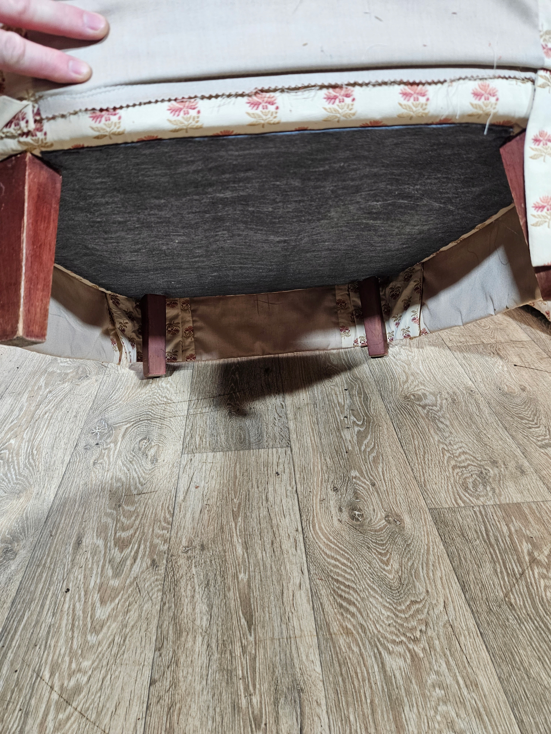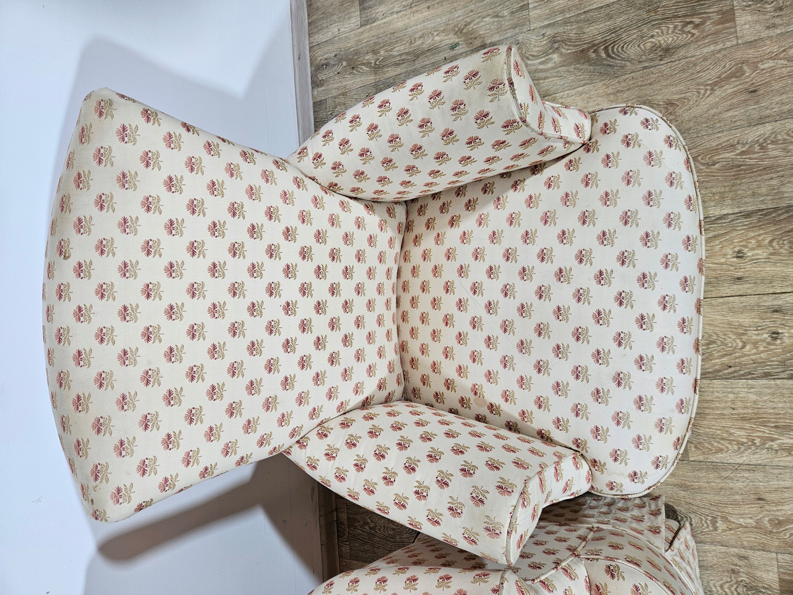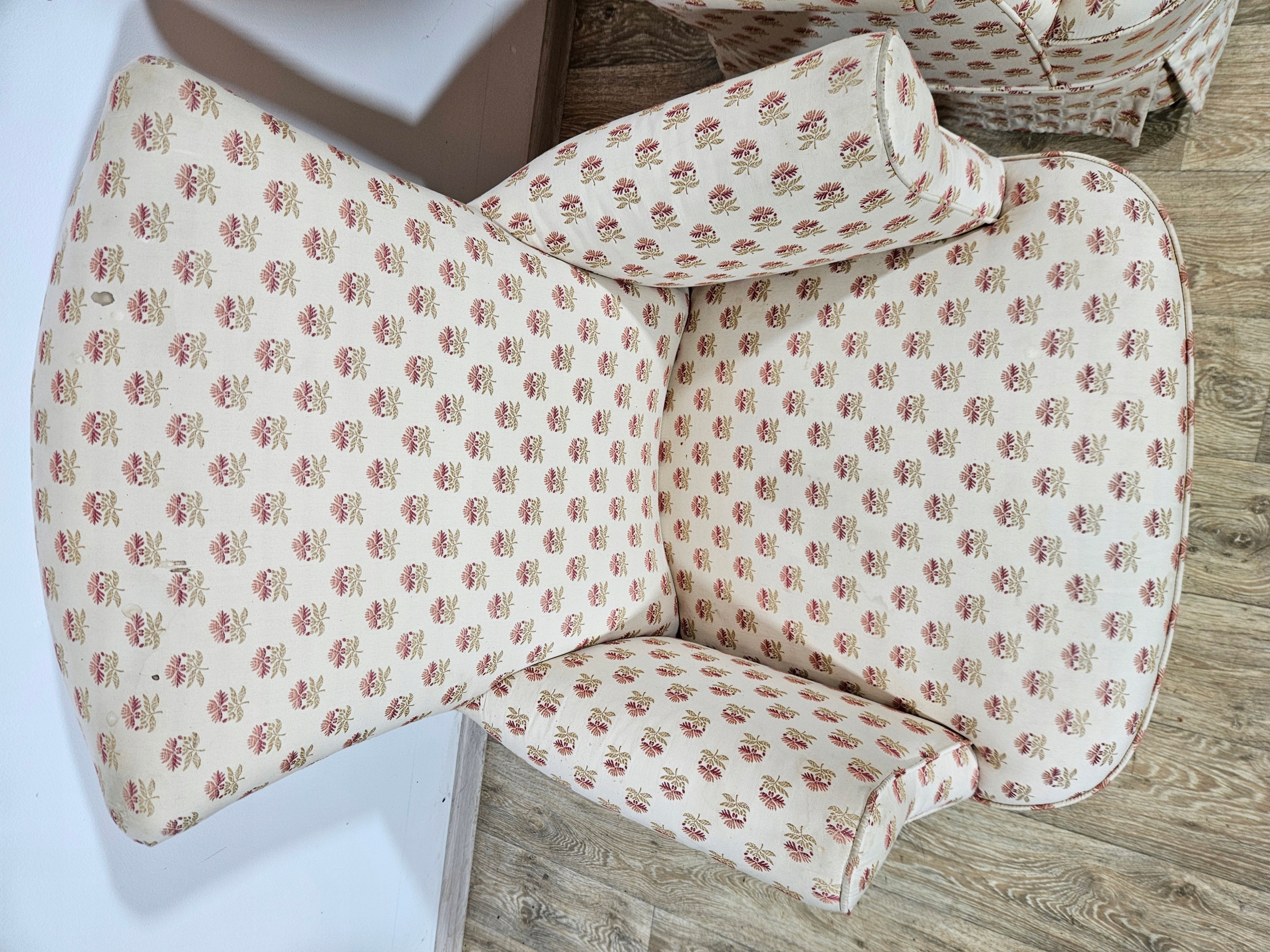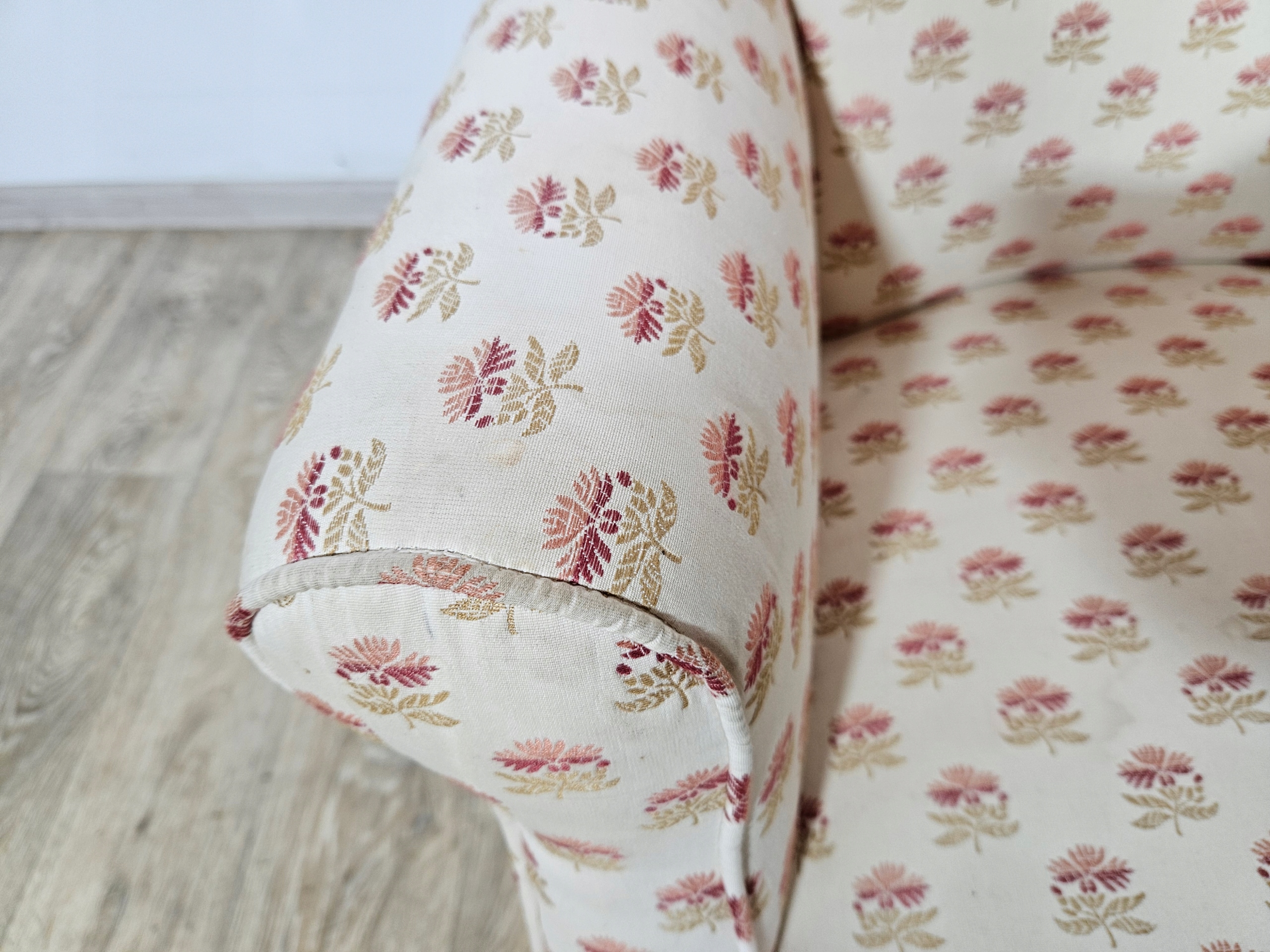 Мебель обита высококачественной тканью светлого кремового оттенка, покрытой очаровательным регулярным цветочным узором. Этот дизайн вне времени и легко вписывается в стили шебби-шик, кантри-француз или традиционный стиль.