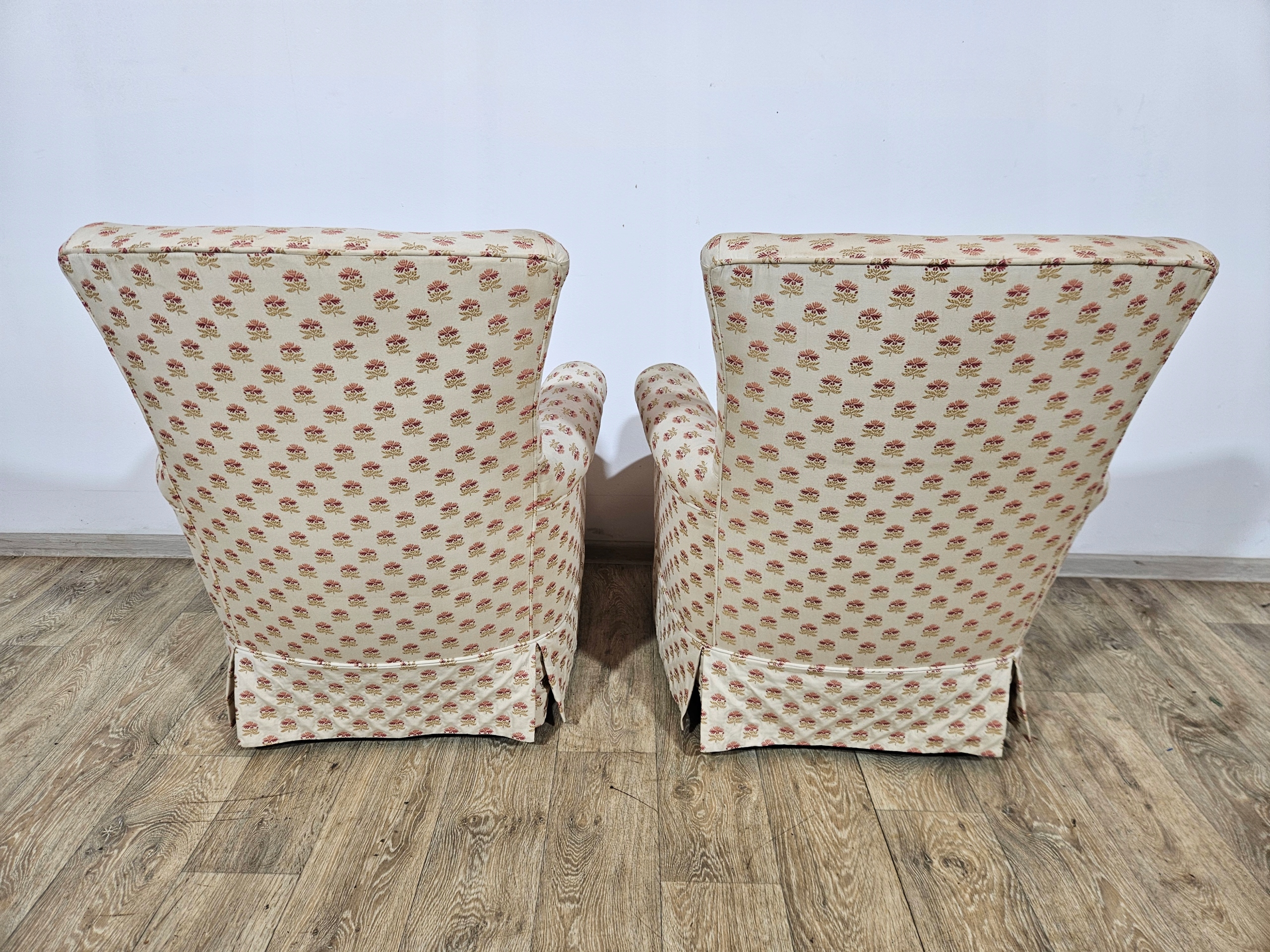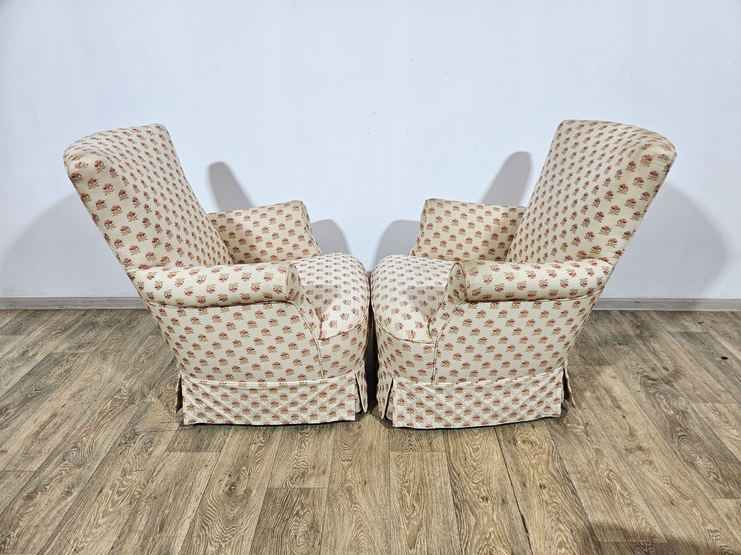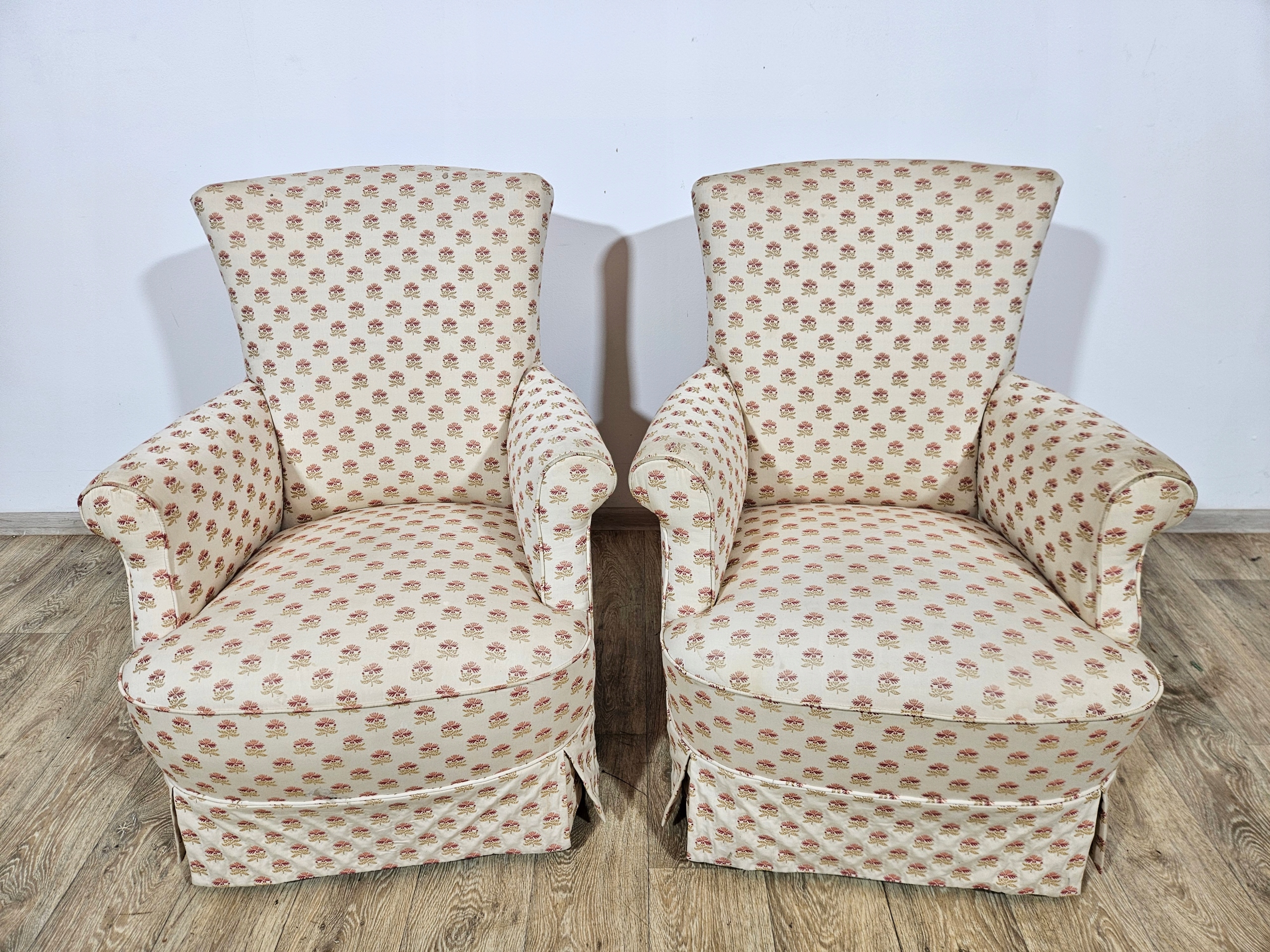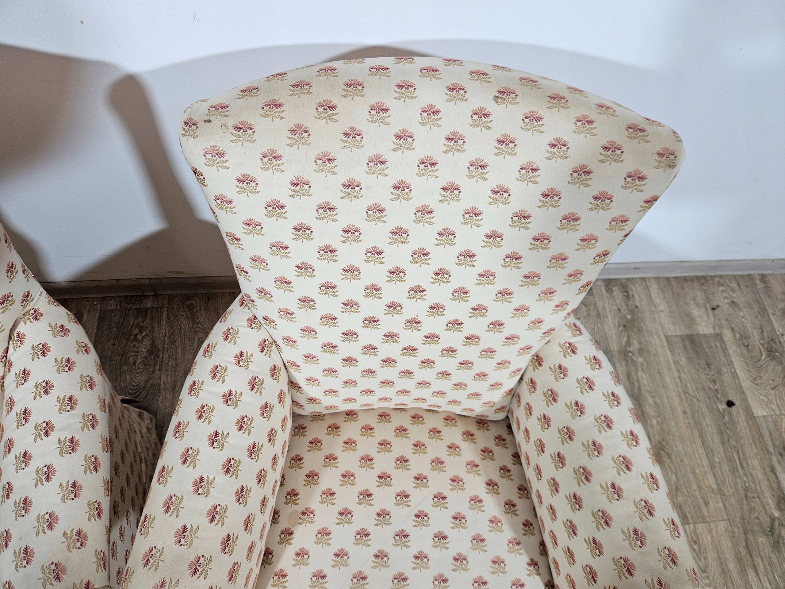 Мебель обита высококачественной тканью светлого кремового оттенка, покрытой очаровательным регулярным цветочным узором. Этот дизайн вне времени и легко вписывается в стили шебби-шик, кантри-француз или традиционный стиль.