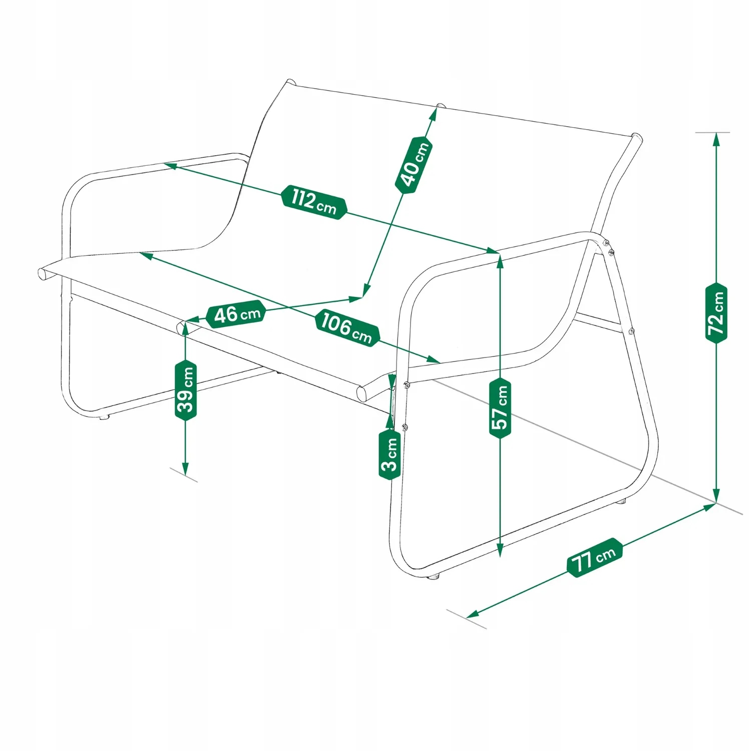 - Размеры: таблица (86x46x38 см), сиденья (60x77x73 см), диван (112x77x72 см).