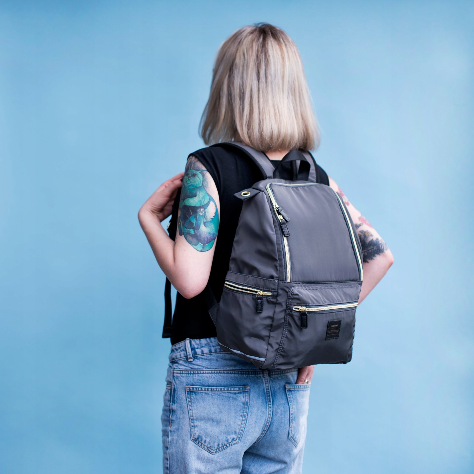 - >ДЕТАЛИ: Золотые молнии с деталями из эко-кожи придают рюкзаку элегантный характер.Он хорошо сочетается даже с моделями с длинным пальто.