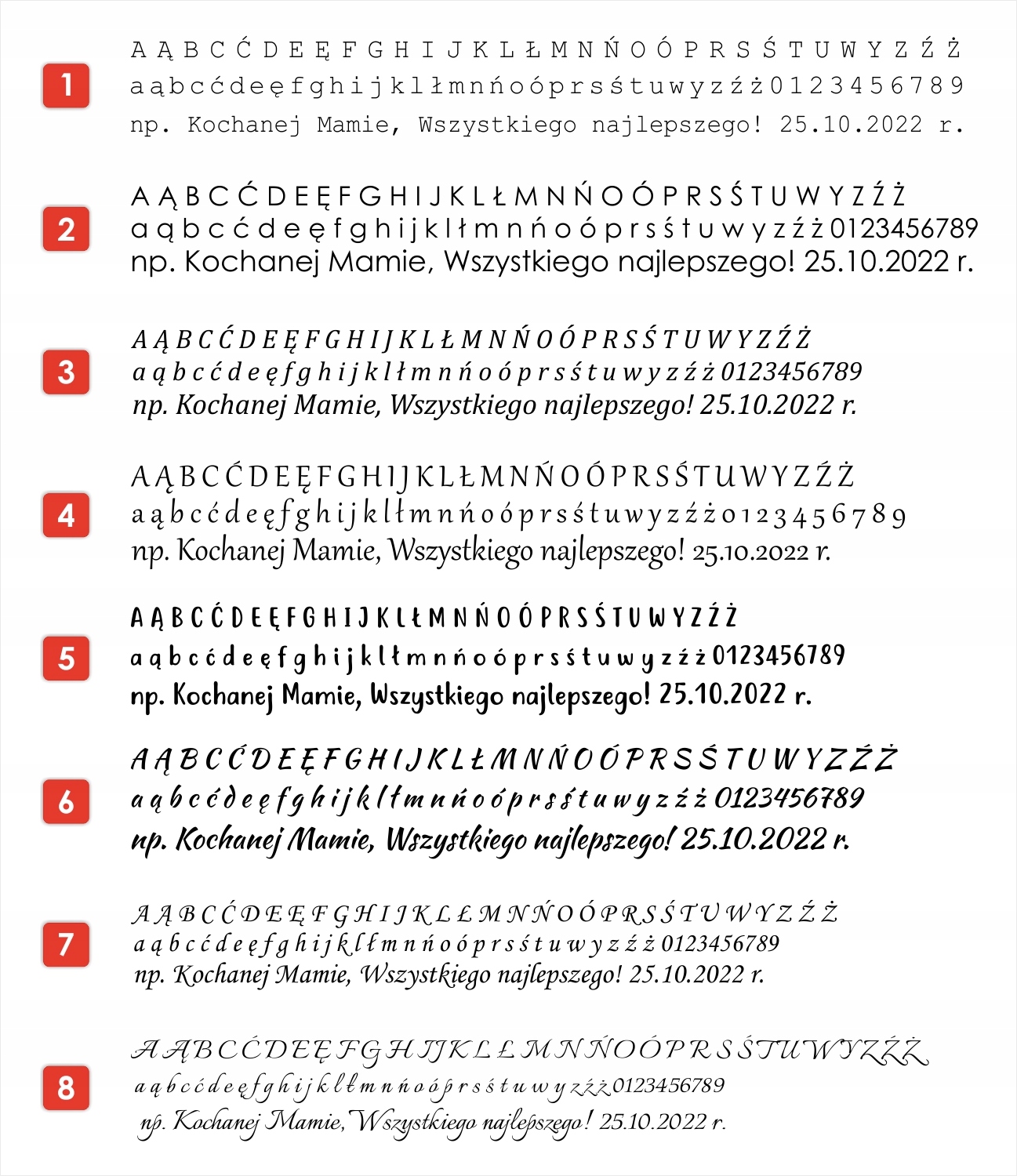 После покупки укажите содержание гравировки и номер выбранного шрифта в сообщении продавцу, например: