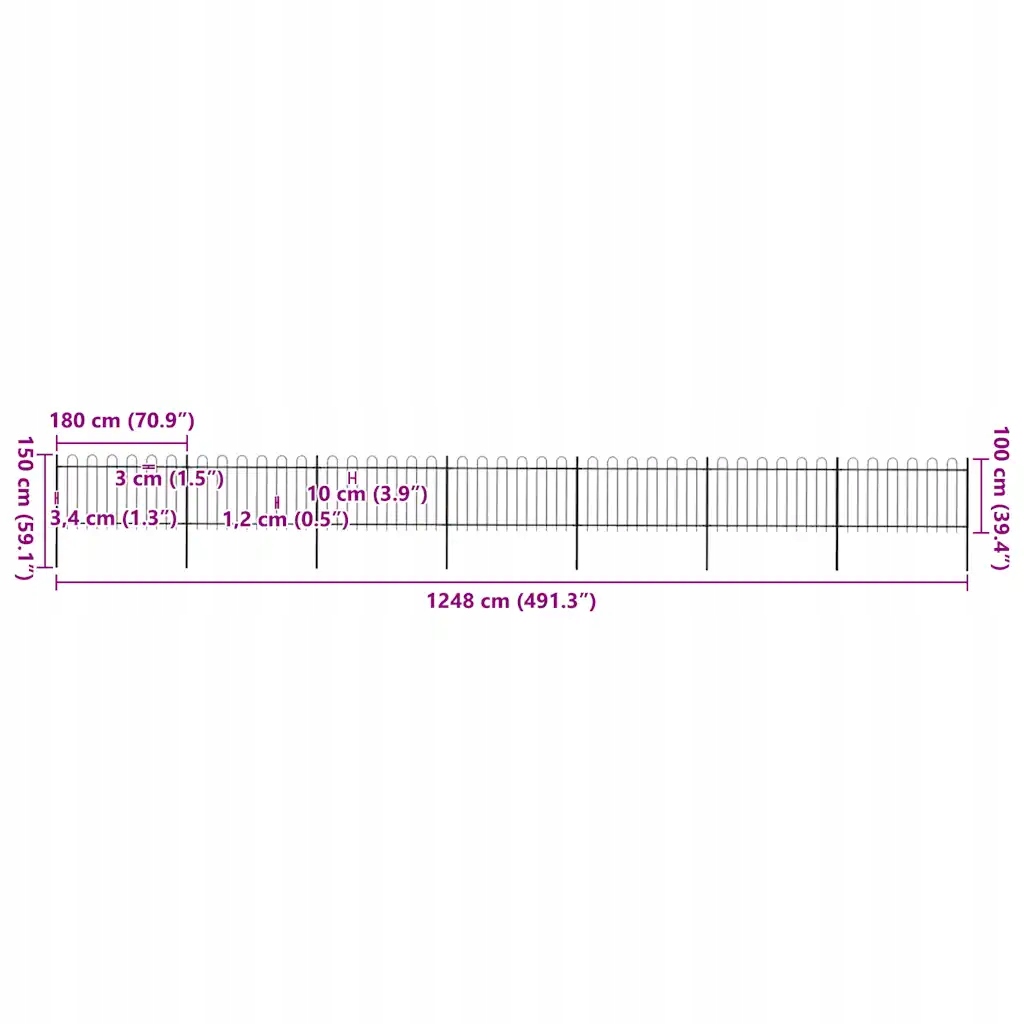 Создайте элегантный забор вокруг вашего сада или дома! Этот декоративный стальной забор, состоящий из 7 панелей и 8 столбов, имеет общую длину 11,9 м. Это создаст сильный, безопасный и не сохраняющий предел вашего сада, среды обитания или коммерческого района.