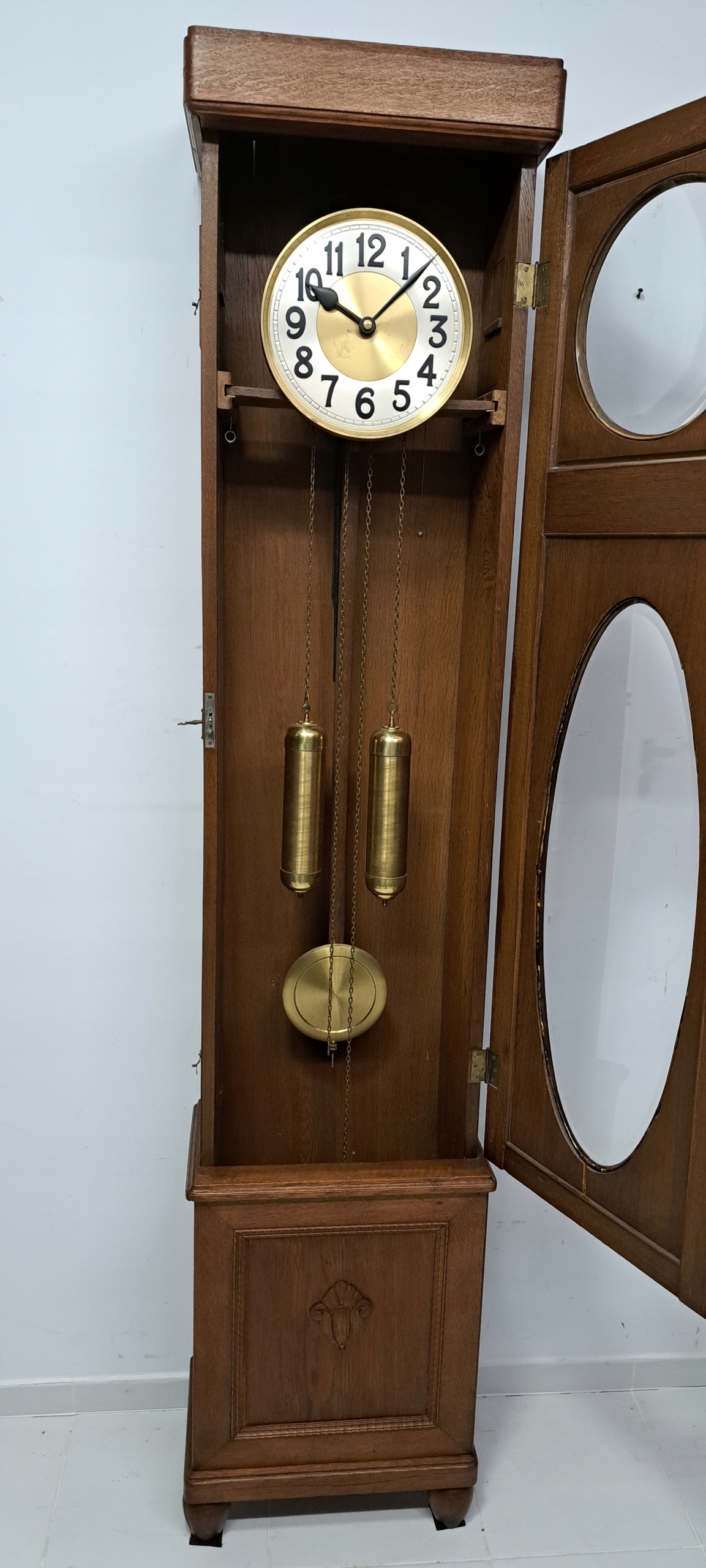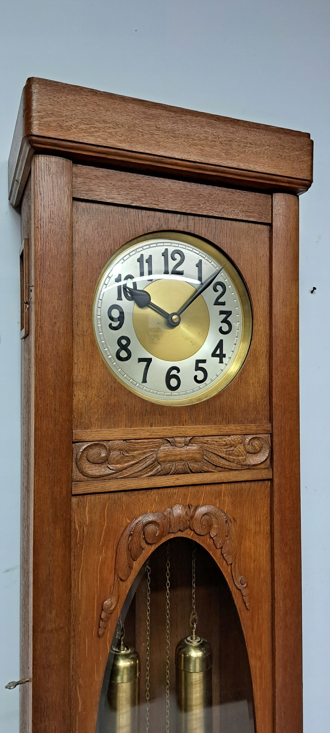 Здоровый грудь, в отличном состоянии, механизм в отличном состоянии после обзора часовщика. Сохраненный, вес и маятник в очень хорошем состоянии.