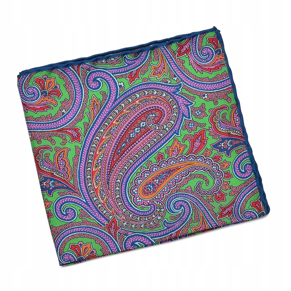 Элегантный зеленый карманный квадрат с красочным рисунком Пейсли с темно -синей границей (код продукта: HP19SS011) H1>
