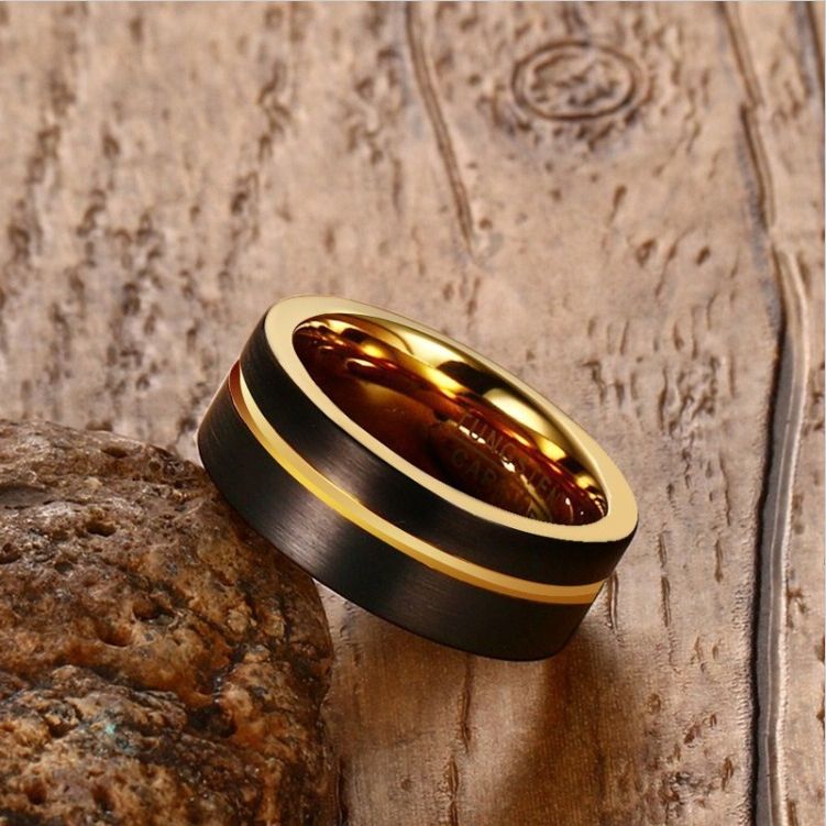 ЭЛЕГАНТНОЕ ЗОЛОТО ЧЁРНО МАТОВОЕ ВОЛЬФРАМОВОЕ ОБРУЧАЛЬНОЕ КОЛЬЦО + коробка