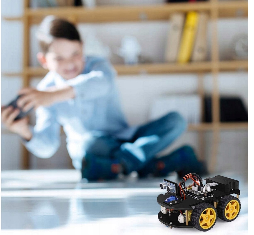 Полный пакет: включает 24 вида модульных частей, включая систему предотвращения препятствий, модуль отслеживания линий, инфракрасный пульт дистанционного управления и им можно управлять с помощью телефона и планшета Android и iOS и т. д.