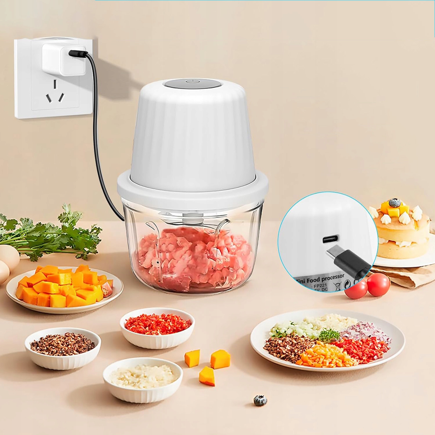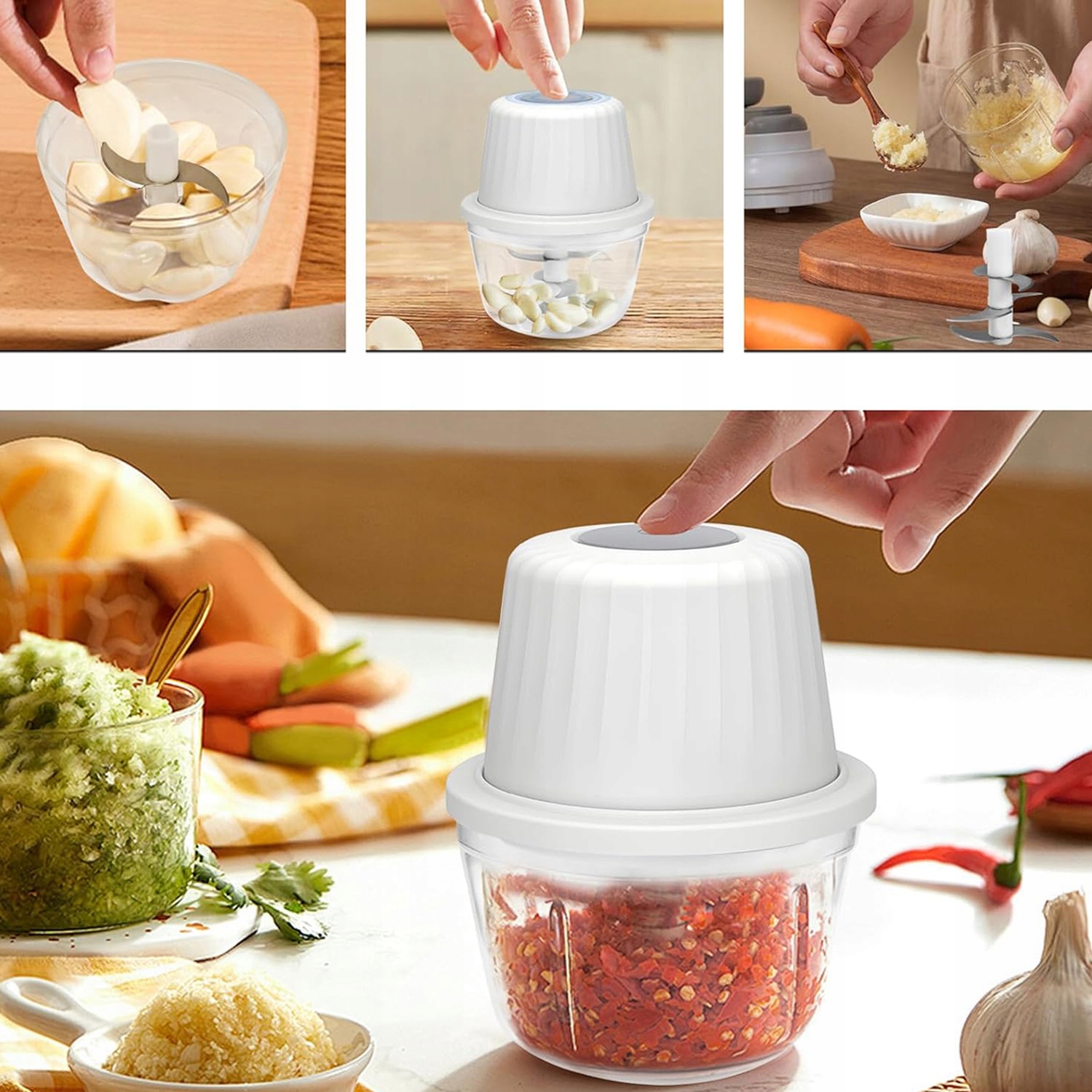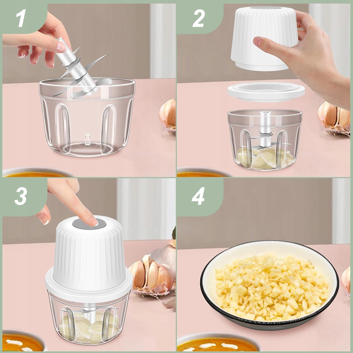 Многофункциональный вертолет оснащен кабелем зарядки C и аккумулятором 1200 мАч, который обеспечивает длительный срок службы. Он также имеет высокоскоростный двигатель с интеллектуальной защитой, который предотвращает запуск устройства без плотно закрытой крышки, обеспечивая безопасность. По сравнению с другими резцами чеснока наша модель сильнее и может быстро нарезать пищу, что делает ее отличным выбором, если вы хотите сэкономить время и энергию.