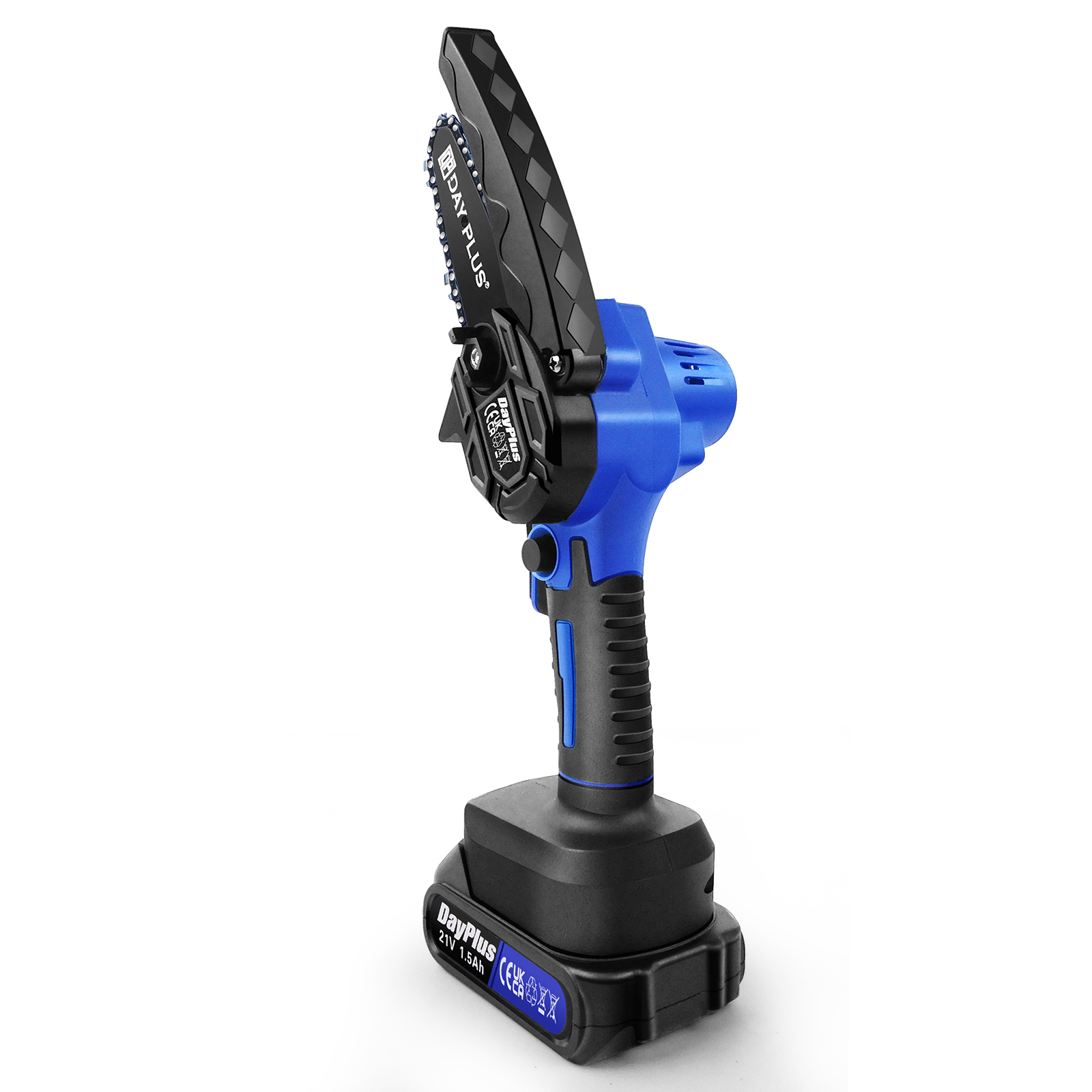 【Емкость аккумулятора для источника зарядки】 Ручная бензопила поставляется с литиевой батареей напряжением 21 В, 1,5 Ач, которую можно использовать в течение 30-40 минут при зарядке и обеспечивает производительность без потери памяти.