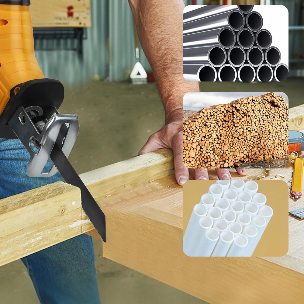 - ✔️ В комплект входят 4 лезвия для удовлетворения всех ваших потребностей в резке, поэтому вы можете легко переключаться между всеми лезвиями для резки дерева, веток деревьев, труб из ПВХ, стекловолокна, тонкой стали и многого другого.