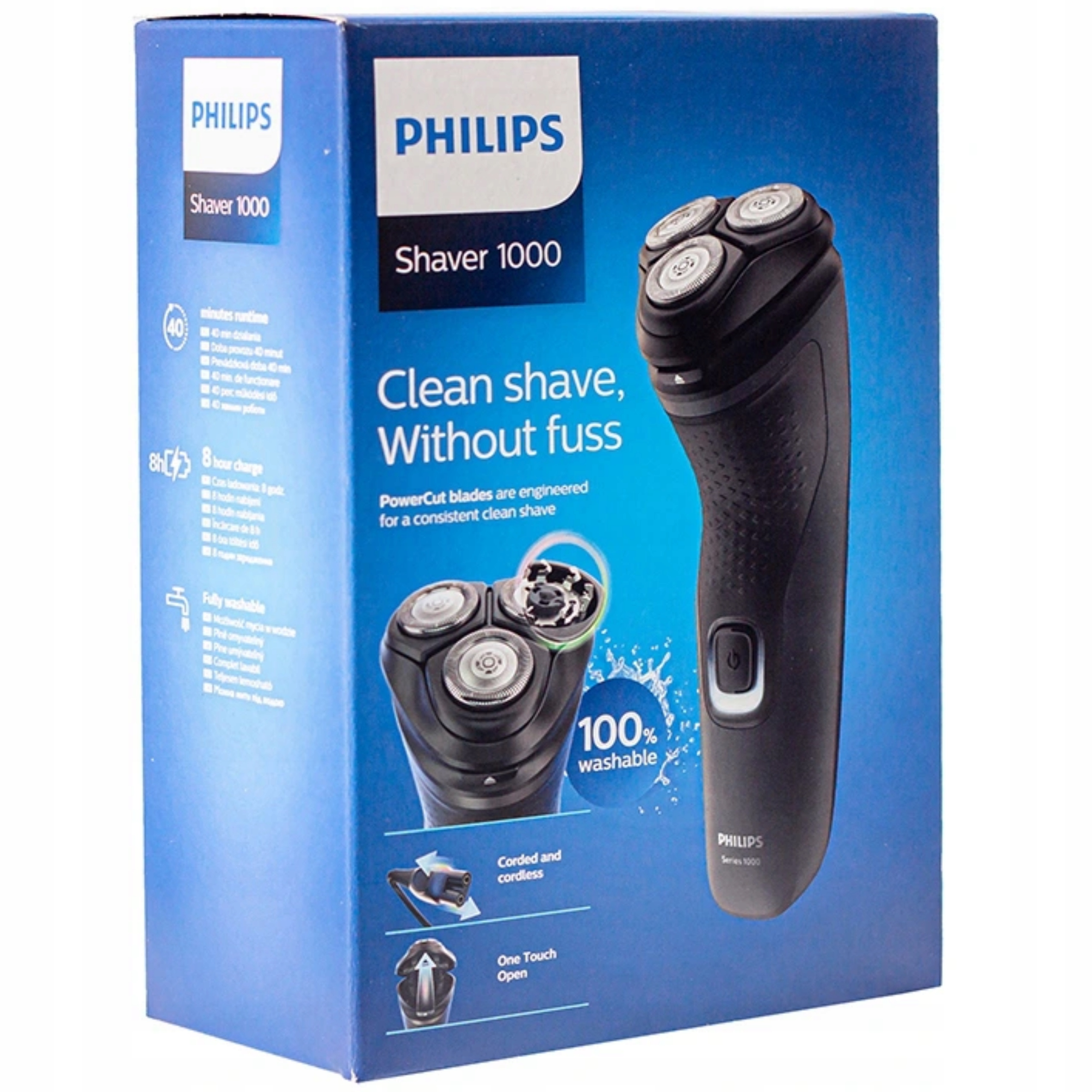 Бритва Philips Shaver Series 1000 предлагает легкое и комфортное бритье по доступной цене благодаря самозатачивающимся лезвиям PowerCut и возможности полностью промывается водой.