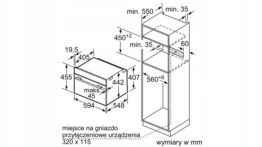Серия 8, Компактная встраиваемая духовка с пароваркой, 60 x 45 см, Черный