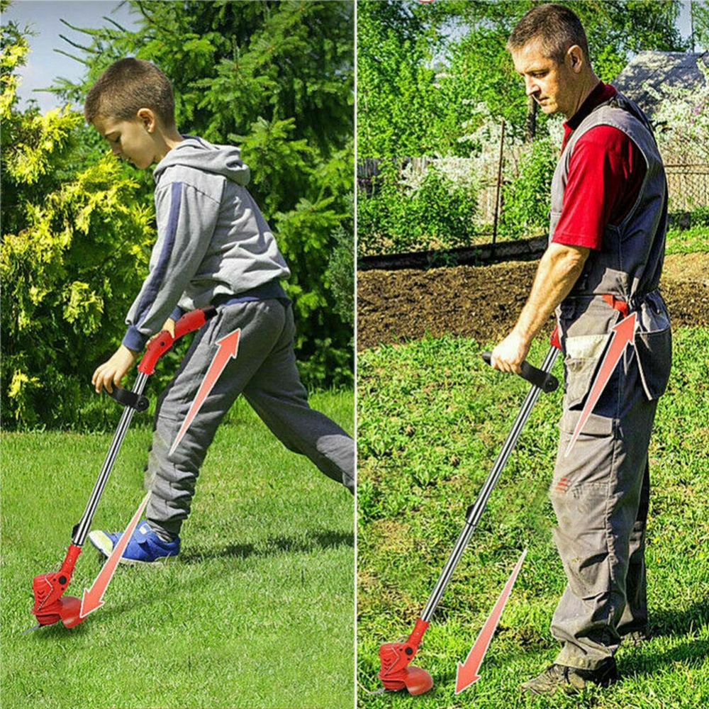 🌱 Телескопическая беспроводная газонокосилка трубку можно свободно регулировать в соответствии с вашими потребностями. Регулируемая телескопическая трубка длиной 30 см (общая длина электрической газонокосилки может регулироваться: 90–120 см). Рабочую высоту можно свободно регулировать под свои нужды, что снижает нагрузку на поясничный отдел позвоночника.