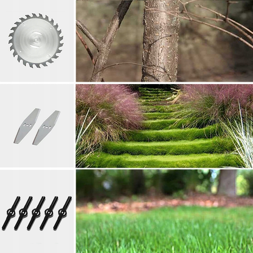 🌾 Аккумуляторная газонокосилка оснащена тремя режущими головками: пластиковыми лезвиями для скашивания мягкой травы, стальными лезвиями для скашивания травы. , сорняки и небольшие кусты, а также круглое лезвие из марганцовистой стали для скашивания густой травы, кустарников и ветвей. Угол головки можно регулировать на 90 градусов, что позволяет пользователям регулировать угол резки и резать в труднодоступных местах, например, под рабочим столом.