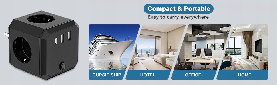✔ Несколько разрывов без кабеля: кубический розетка оснащена 4 камерами и 1 USB C, 2 USB A, также может работать до 7 устройств в одно и то же время, подходящими для семейства, совершения и путешествий. Переключатель: Многие гнезда с независимым переключателем, который можно использовать для включения и выключения. Весь источник питания может быть сокращен, чтобы обеспечить безопасность потребления энергии.
