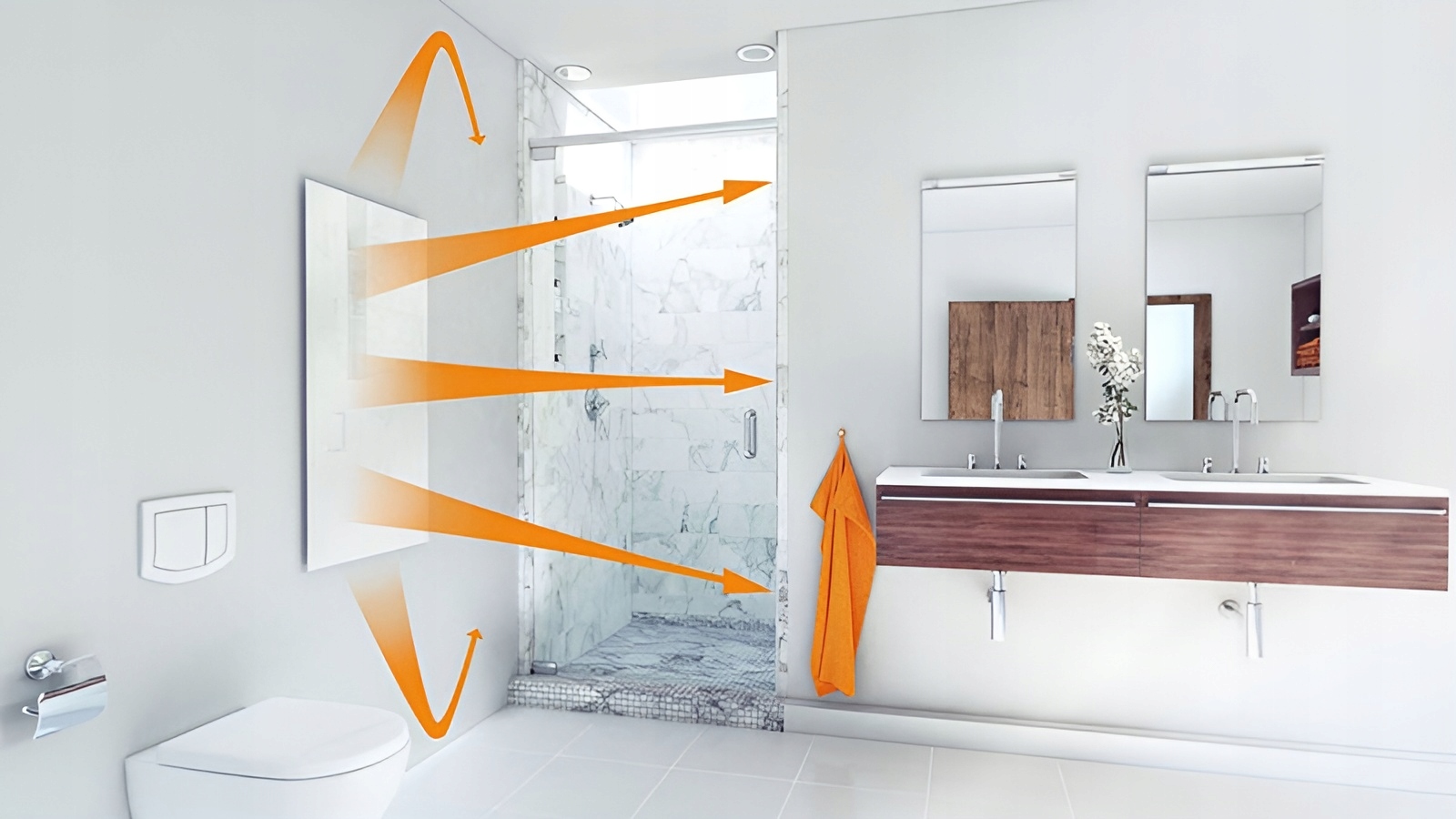 Вместо медленного нагрева воздуха, панель излучает тепло, похожее на солнечный свет b> - приятный, здоровый и сразу же ощущаемый. Обгревает область вокруг 10-12 м², так что она отлично работает в гостиной, в спальне, офисе или в ванной комнате.