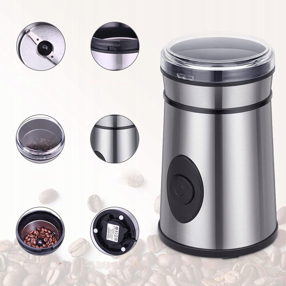 Электрическая кофемолка для кофе, орехов и специй из нержавеющей стали, 200Вт, одно нажатие кнопки, емкость 50г, напряжение 100-240В~.