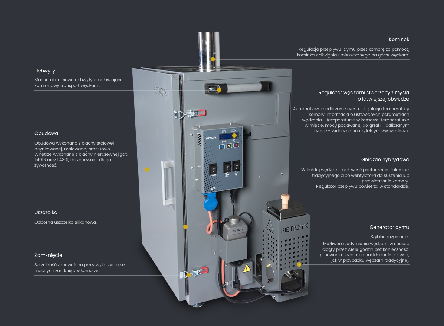 Электрическая коптильня Konesera от PIETRZYK — проверенное устройство для копчения пищевых продуктов (рыбы, мяса, сыра и других мясных продуктов). Мы создали коптильню, эксплуатация которой предельно проста, поэтому вы сможете наслаждаться вкусом собственных продуктов. Идеально подходит для начинающих и опытных пользователей.