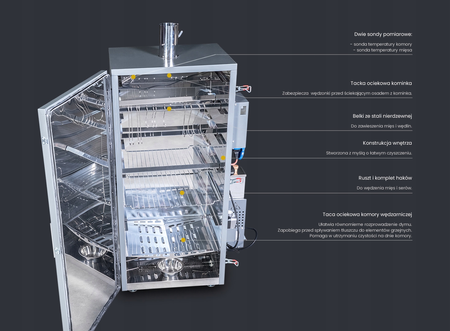 Изготовленный из материалов высочайшего качества, он обеспечивает длительное использование по очень конкурентоспособной цене. Благодаря полной автоматизации процесс копчения становится еще проще и менее трудоемким, чем традиционное копчение.
