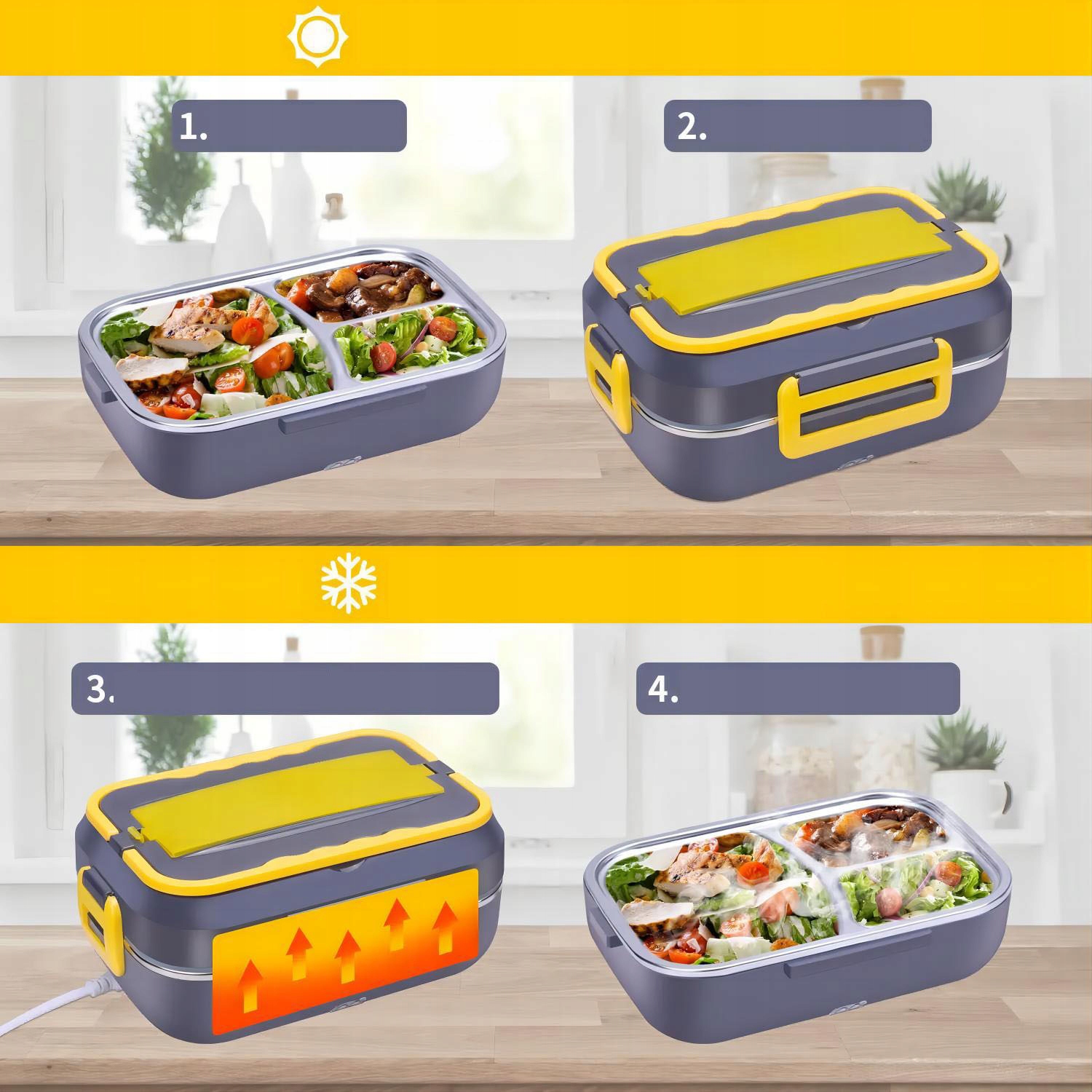 - ✔ Этот электрический обеденный нагреватель запечатан высококачественным силиконом, который предотвращает разваливаться сок от еды. Изготовленные из высококачественного пластика для контакта с едой и 304 из нержавеющей стали, они долговечны и просты в чистке.