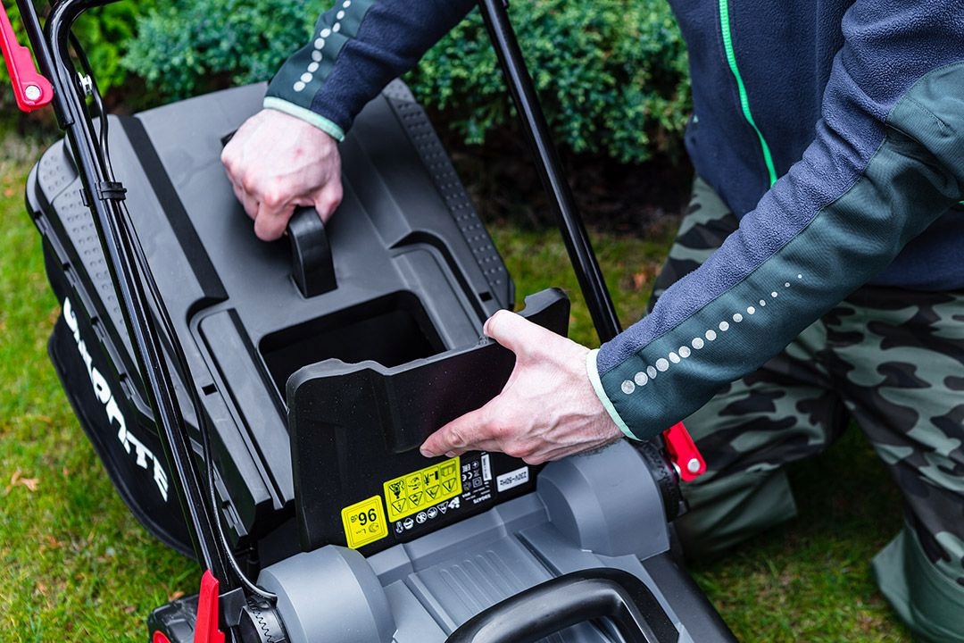 Специально профилированная крышка корзины обеспечивает оптимальный сбор скошенной травы, а большие задние колеса облегчают маневрирование. Возможность удобной транспортировки с помощью ручки, расположенной на корпусе косилки.
