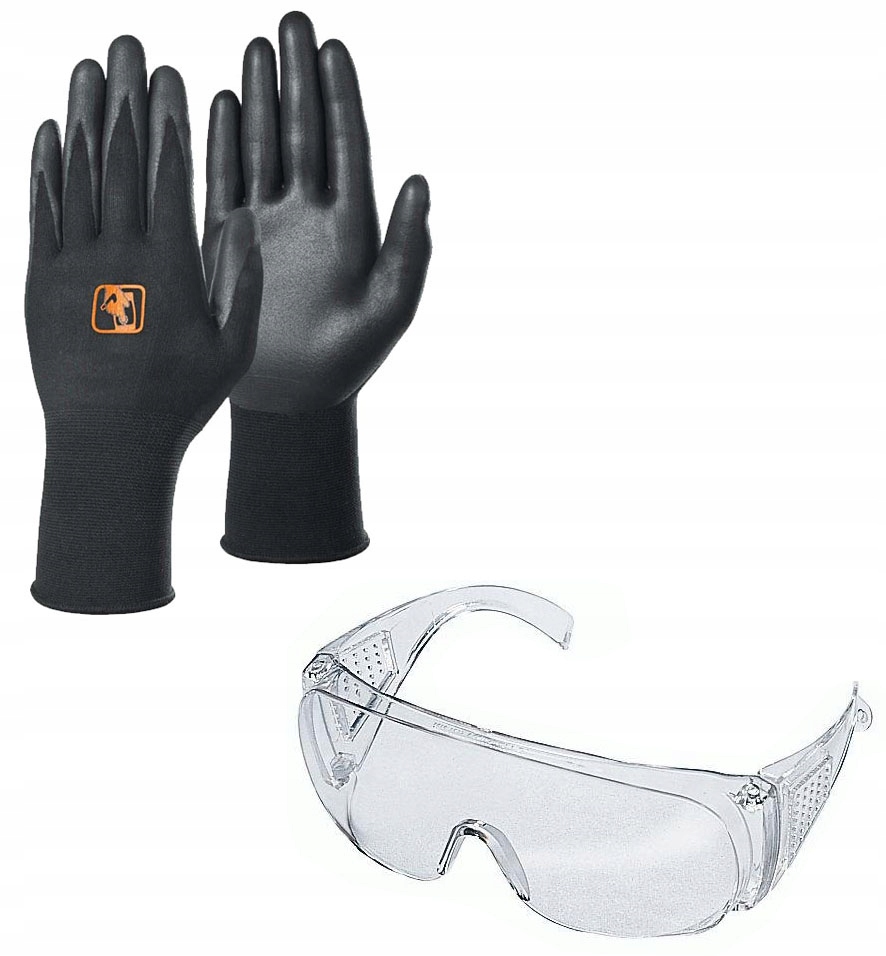 защитные очки - стандартные очки обеспечивают адекватную защиту от травм и, благодаря их легкостью и соответствующей комфорте с высокой работой. Высококачественное стекло поглощает вредное ультрафиолетовое излучение и не вызывает разрушения изображения, что защищает наше зрение. Удаление перчаток. Кроме того, перчатки хорошо адаптируются к форме руки, что гарантирует определенную сцепление и комфорт работы. Гибкий съемник мешает вам проникать в перчатки ничего нежелательного.