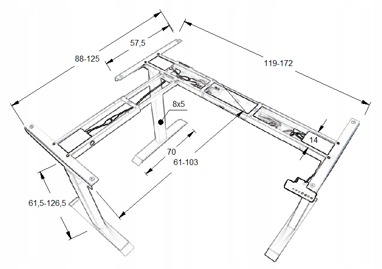 - электрическая регулировка высоты в диапазоне 61,5-126,5 см осуществляется с помощью трех электродвигателей
