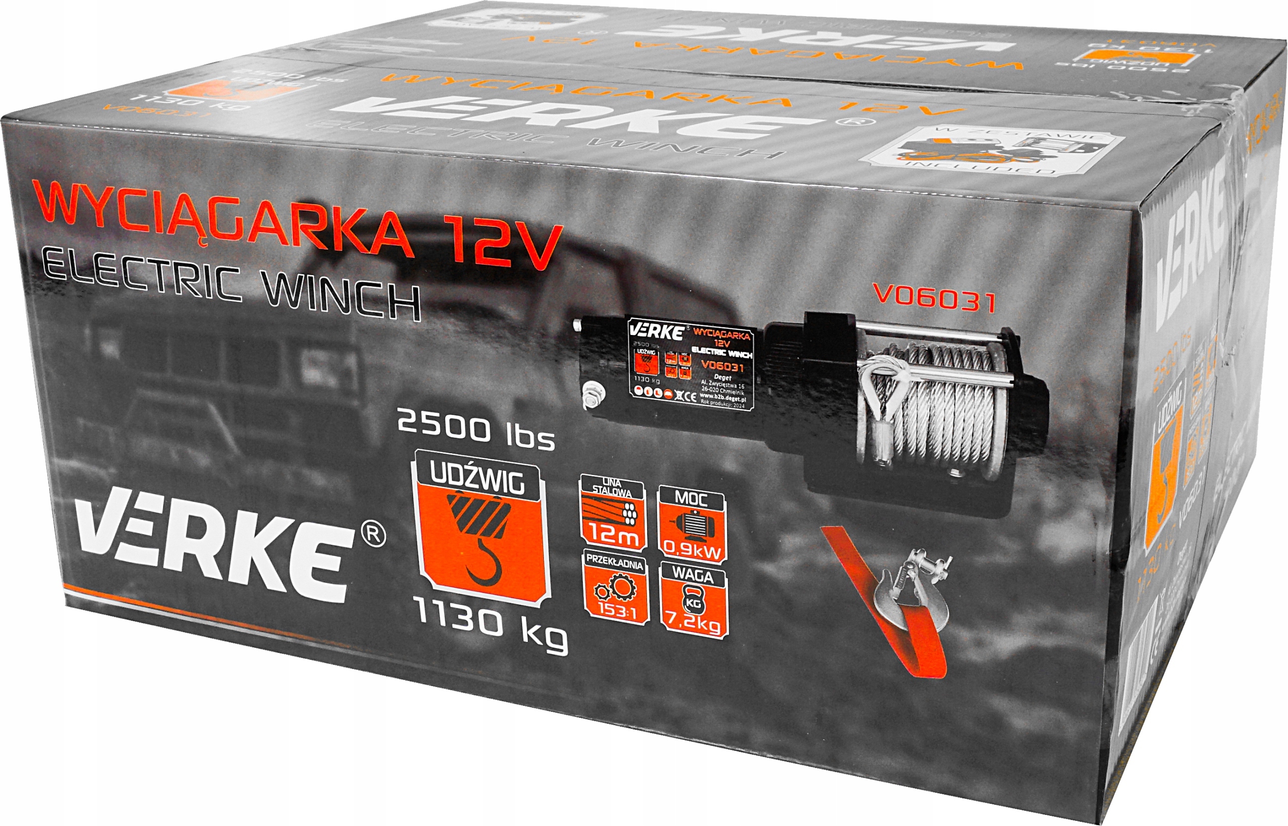 12 В лебедка, 2500 фунтов, стальная лина 12M Verke h1>