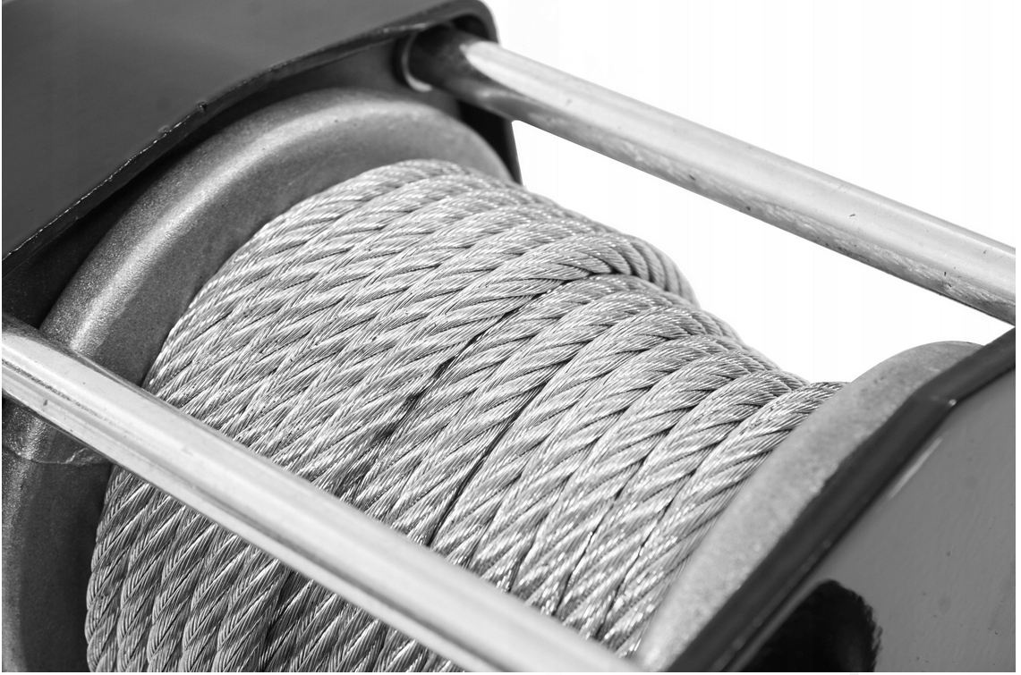 Стальная веревка: Лебедка оснащена сплошной стальной веревкой, которая гарантирует надежность и исключительную долговечность даже в наиболее требовательных условиях.