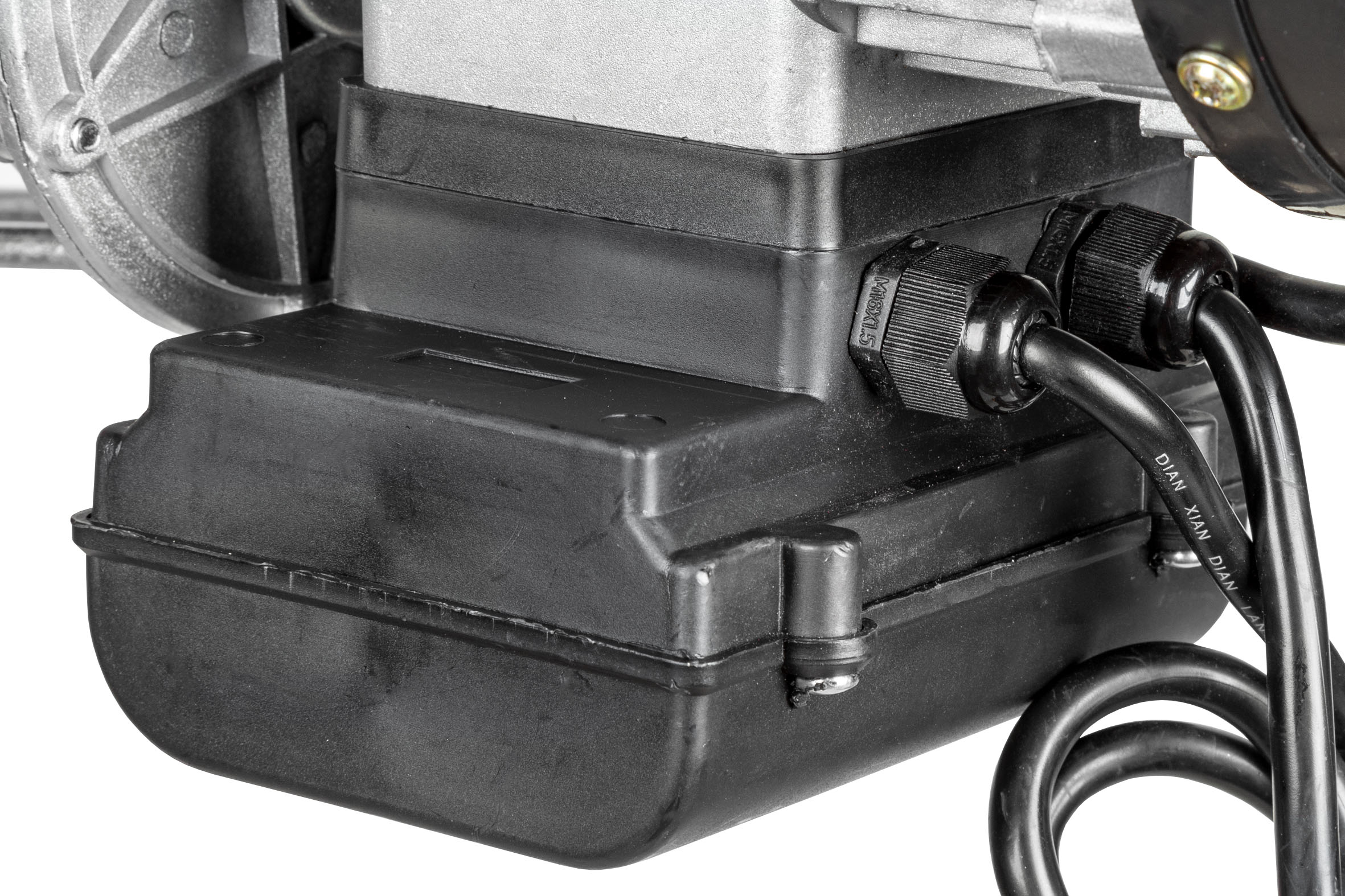 Сердцем лебедки является эффективный асинхронный двигатель максимальной мощностью 1600Вт, который позволяет быстро поднимать предметы массой до 300кг на высоту 12м.