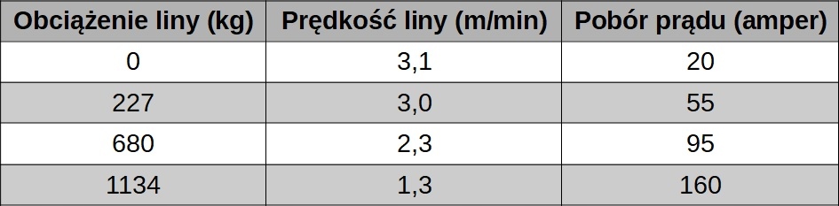 скорость керлинга и энергопотребление (первый слой веревки на барабане): h2>