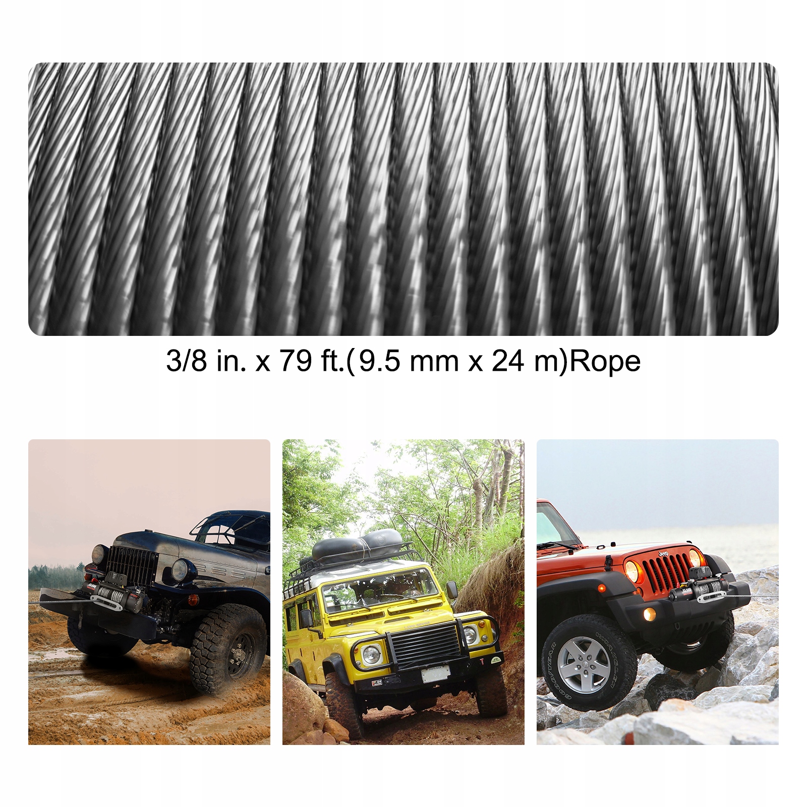 - Усовершенствованный стальной трос: Длина кабеля: 79 футов/24 м; Диаметр кабеля: 3/8 дюйма/9,5 мм. Автомобильная лебедка оснащена более прочным стальным тросом. Это позволяет быстро избавиться от неприятной ситуации, когда автомобили застряли в грязи, сломались и застряли на пляже.