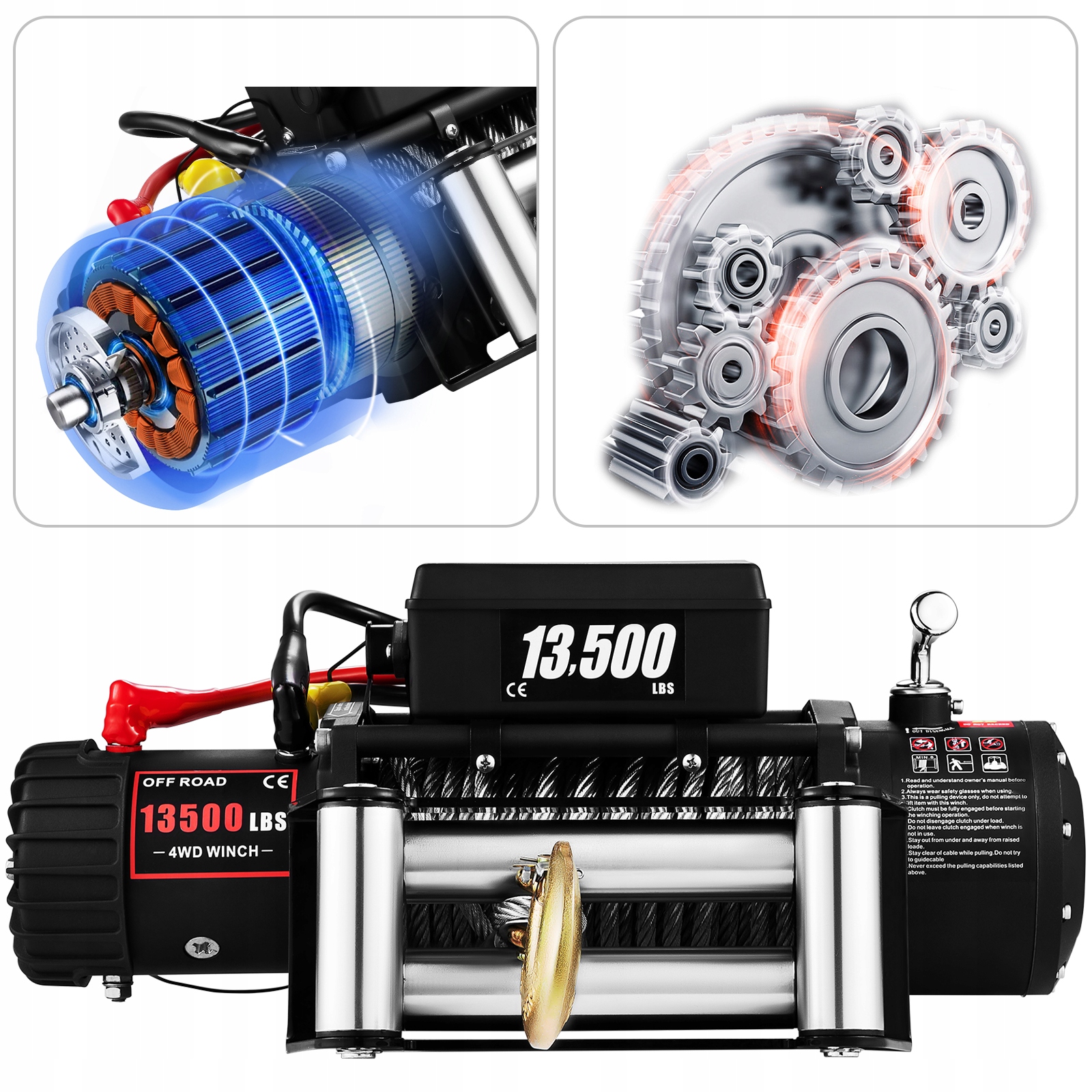 - Отличные характеристики: Грузоподъемность электрической лебедки: 13 500 фунтов (6 123,5 кг); Мощность: 4,85 кВт (6,8 л.с.); Передаточное число: 265:1. Мощный двигатель в сочетании с 3-ступенчатой планетарной передачей обеспечивает большую тяговую мощность и более высокие скорости. Подходит для легковых автомобилей, лодок, грузовиков, джипов, модифицированных транспортных средств и многоцелевых прицепов.