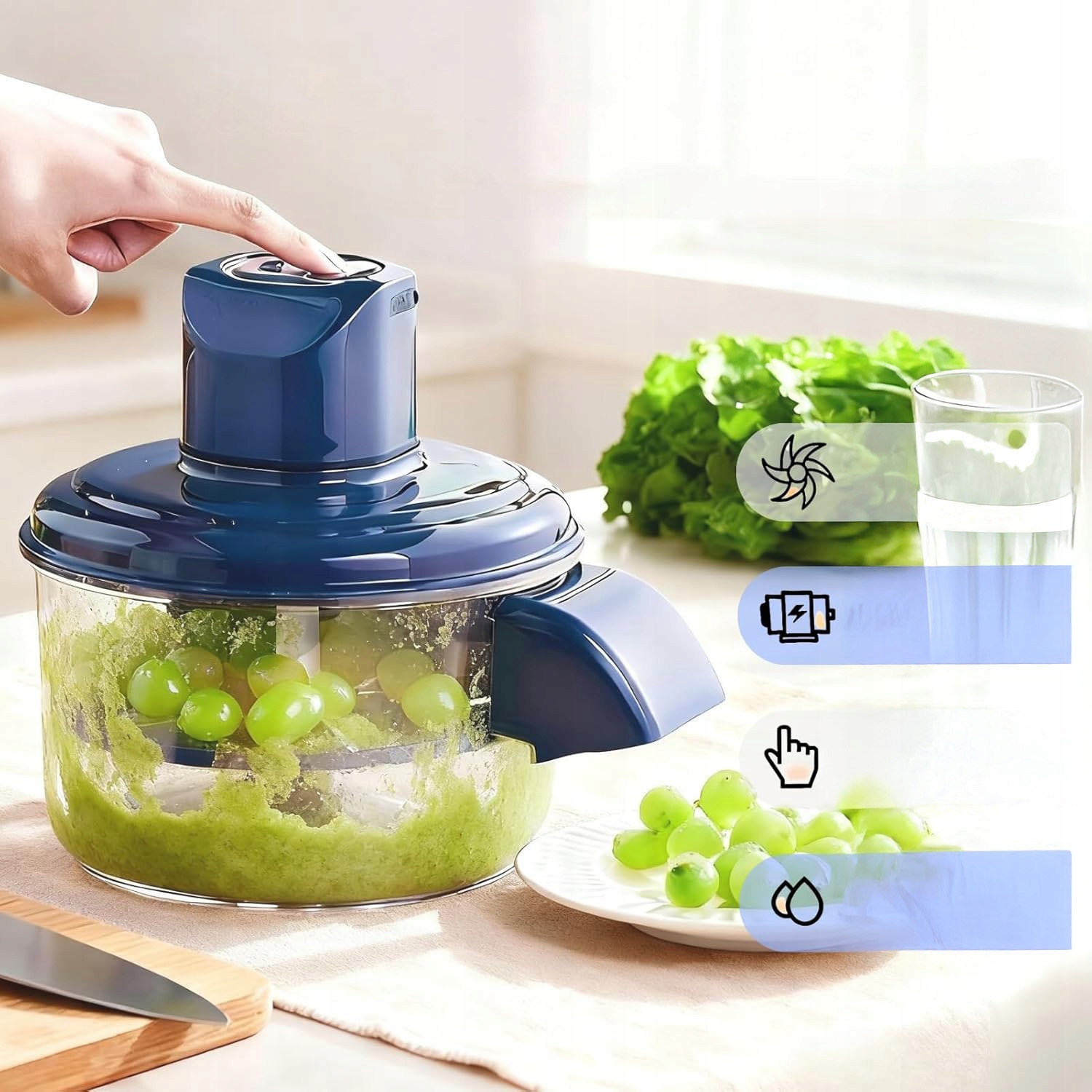 🔥 Бесщеточный двигатель мощностью 50 Вт Быстрое вращение обеспечивает беспроблемную очистку винограда, помидоров черри и других фруктов — идеально подходит для домашней кухни или коммерческого применения (рестораны/общественное питание)!
