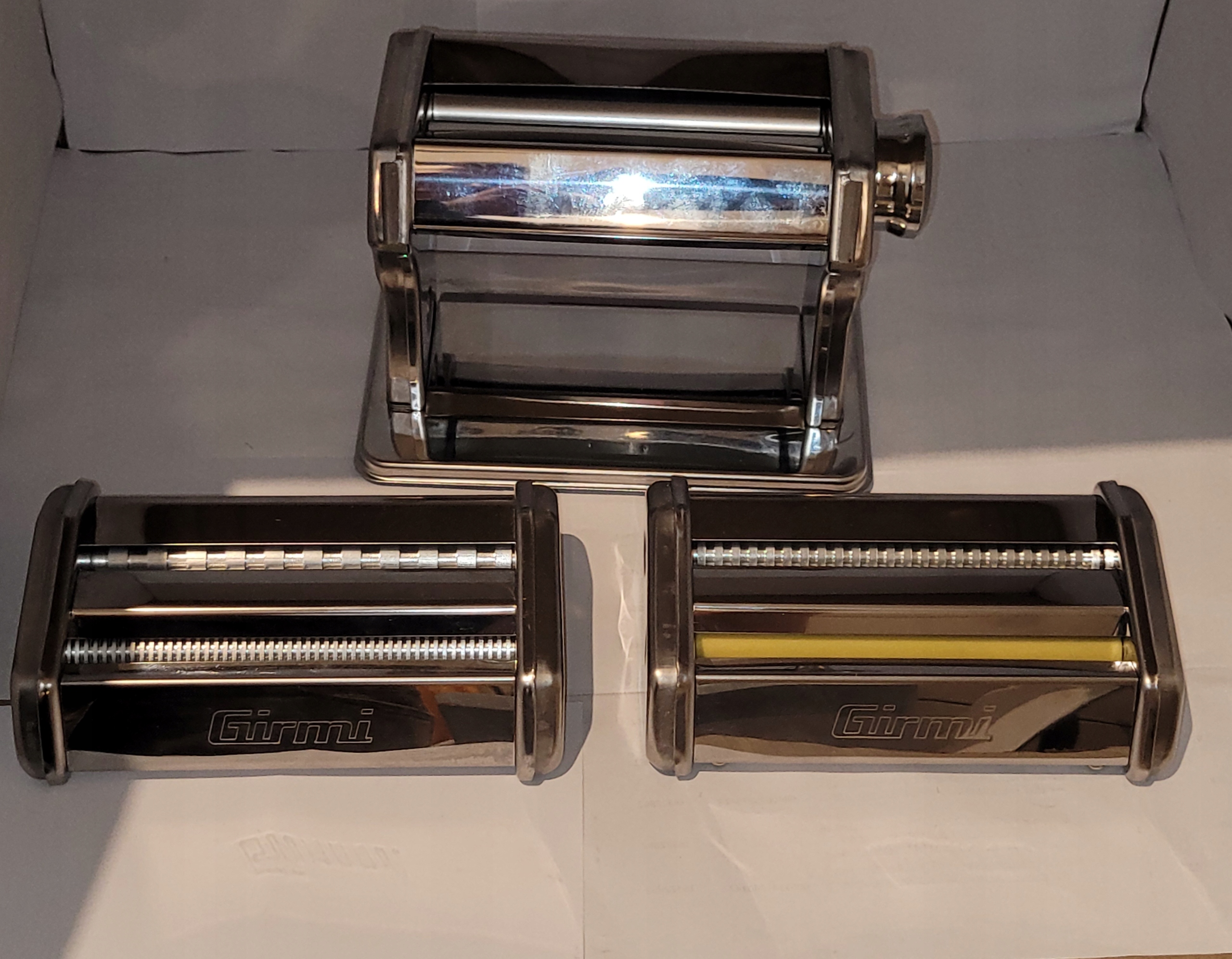 Если вы хотите сделать макароны, как итальянские бабушки, просто положите кривошип, отрегулируйте толщину роликов и раскатайте макароны.