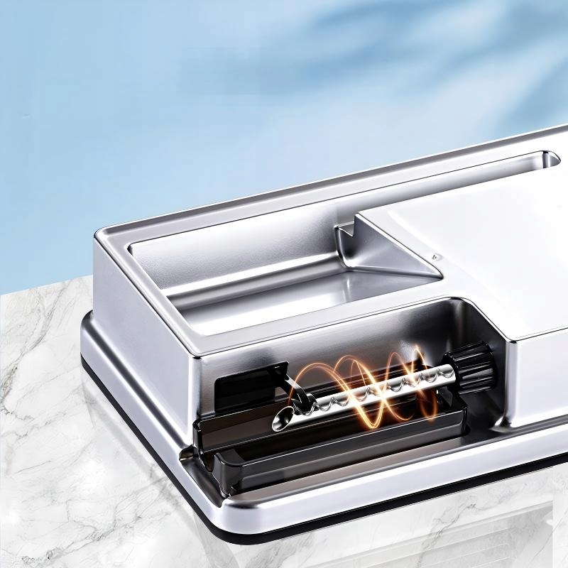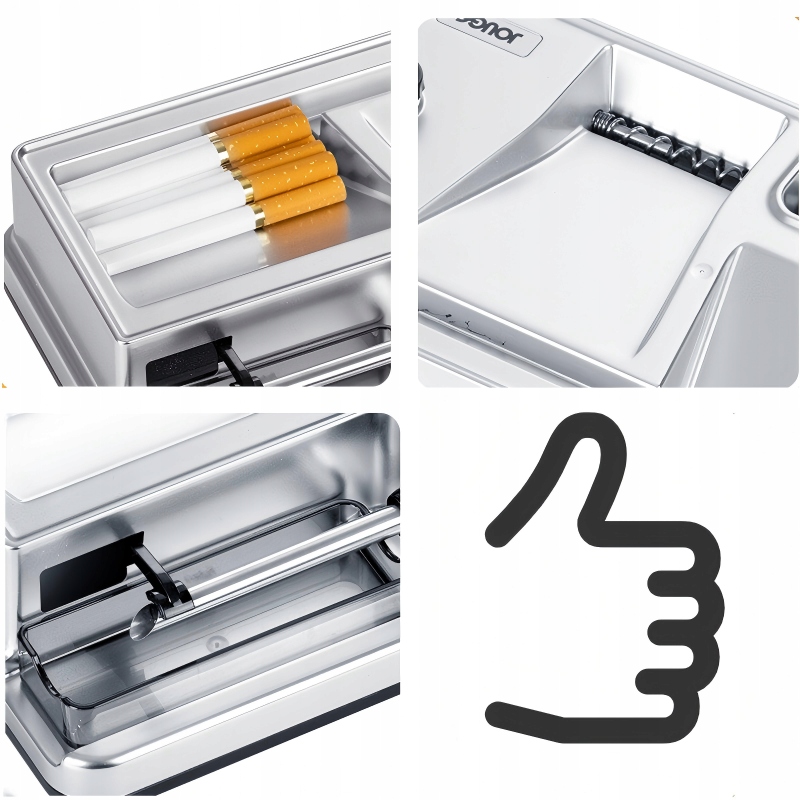 Съемный лоток в нижней части сигаретного отсека собирает табачные отходы, предотвращая их выбрасывание и сохраняя чистоту рабочего места.