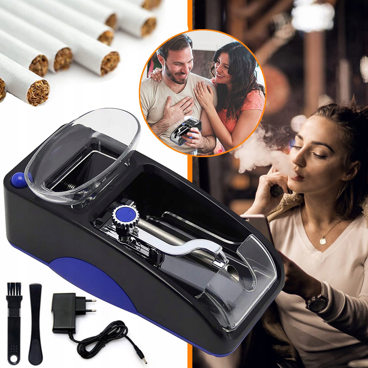 📦📦【В комплект входит】Электрическая машина для скручивания сигарет, европейская вилка , руководство пользователя (может быть недоступно на польском языке), скребок и щетка для чистки — этот полный набор инструментов поможет вам работать чисто и быстро.