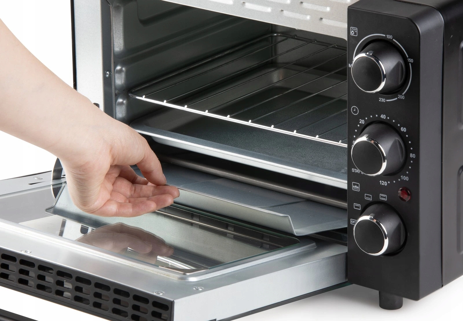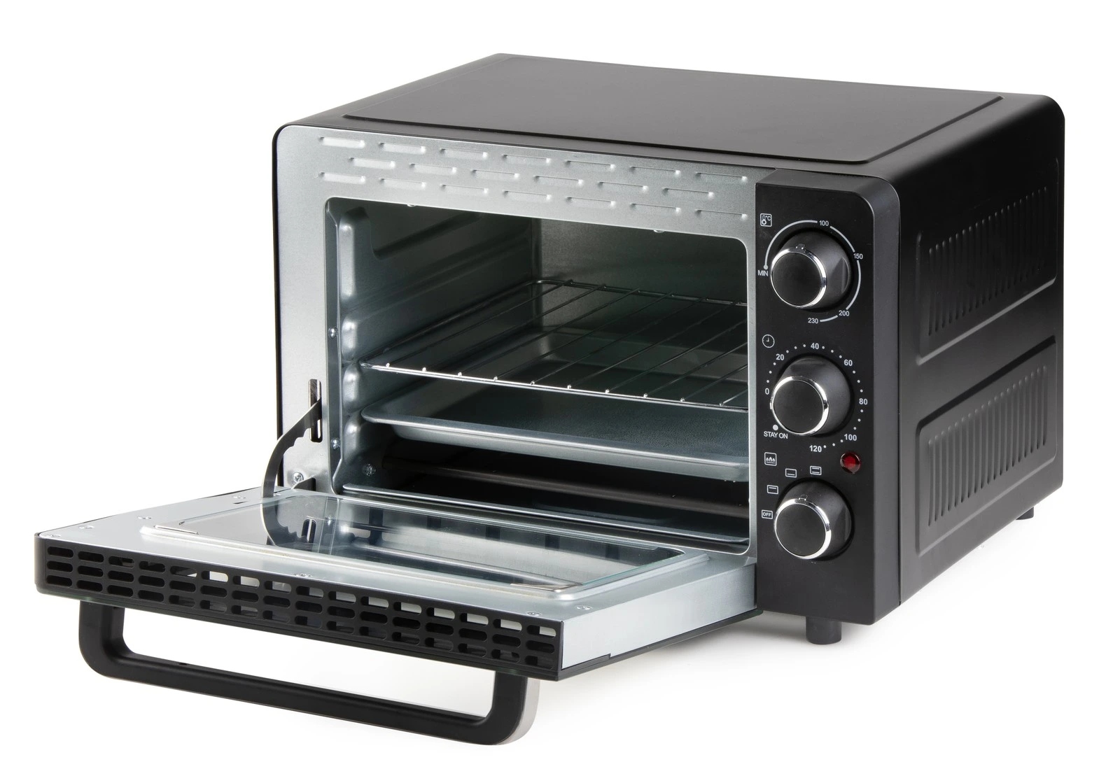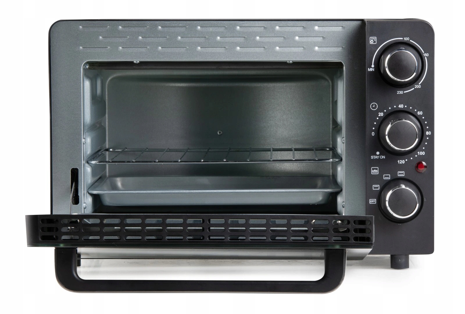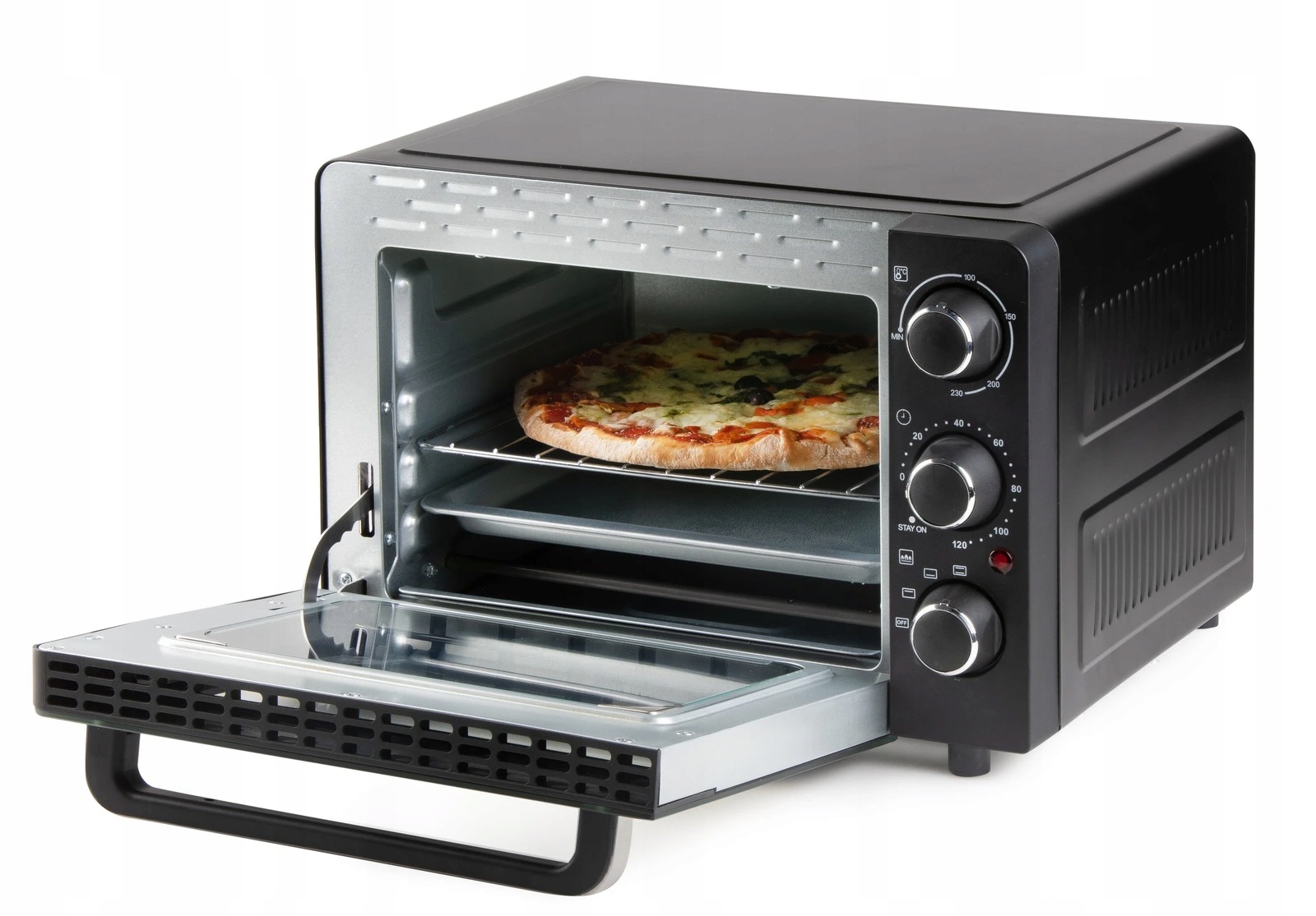 Электрическая печь с внутренней емкостью 20 литров и возможностью верхнего нагрева, более низкого нагрева или комбинации обоих. Регулируемый термостат и таймер.