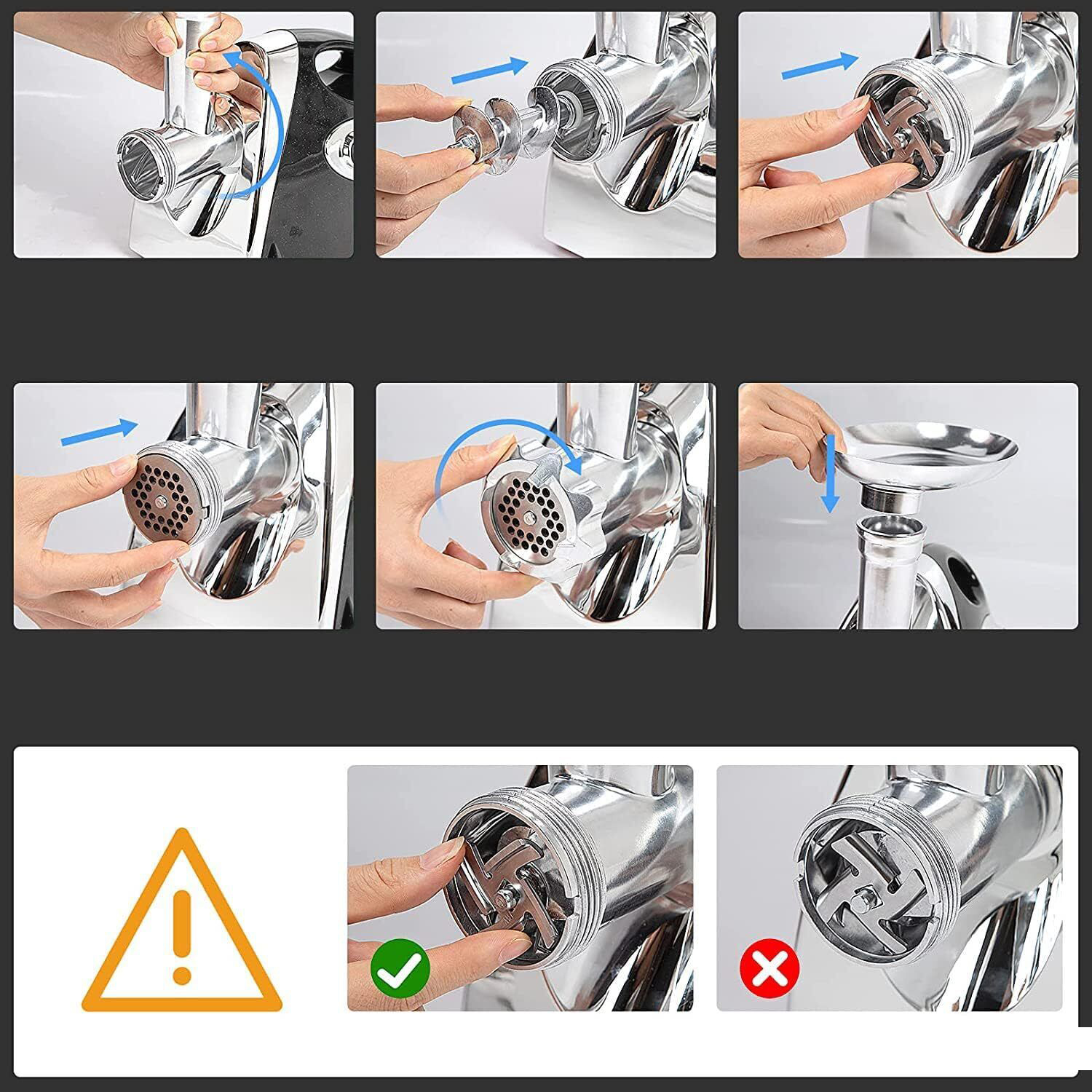 🥩 Мясовая шлифовальная машина - Эта мясорубка представляет собой шлифовальный инструмент с емкостью 2800 Вт, может измельчить мясо и овощи, идеально подходит для измельчения мяса и изготовления набивки. Используемый для измельчения, среднего и тонкого измельчения, с колбасами и кепкой, вы можете сделать гамбургеры, фрикадельки, фрикадельки, колбаски и многое другое. Вам понравится эта электрическая мясная машина. Шланг будет вращаться в противоположном направлении, а головка будет опустошена, легкая разборка для очистки и хранения для безопасного хранения мясных шлифований. Недоверная сталь и высококачественная медь имеет сильное антикоррозивное и долговечное качество, также имеет незвуковые резиновые ножки. Всегда высушите детали сразу после промывки, чтобы продлить срок службы