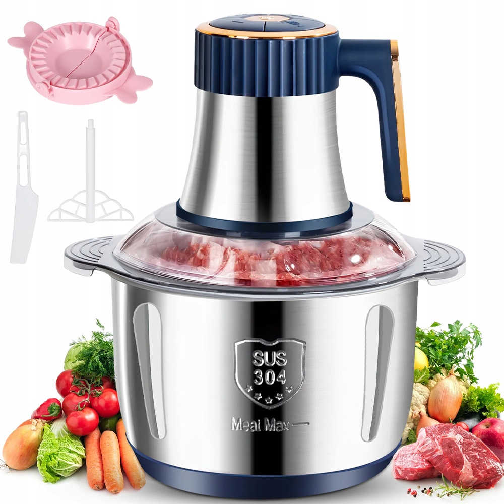 ✔ , оборудованный 6 лезвиями и мощным двигателем 500 Вт , он может разрезать мясо, фрукты, овощи за несколько секунд.