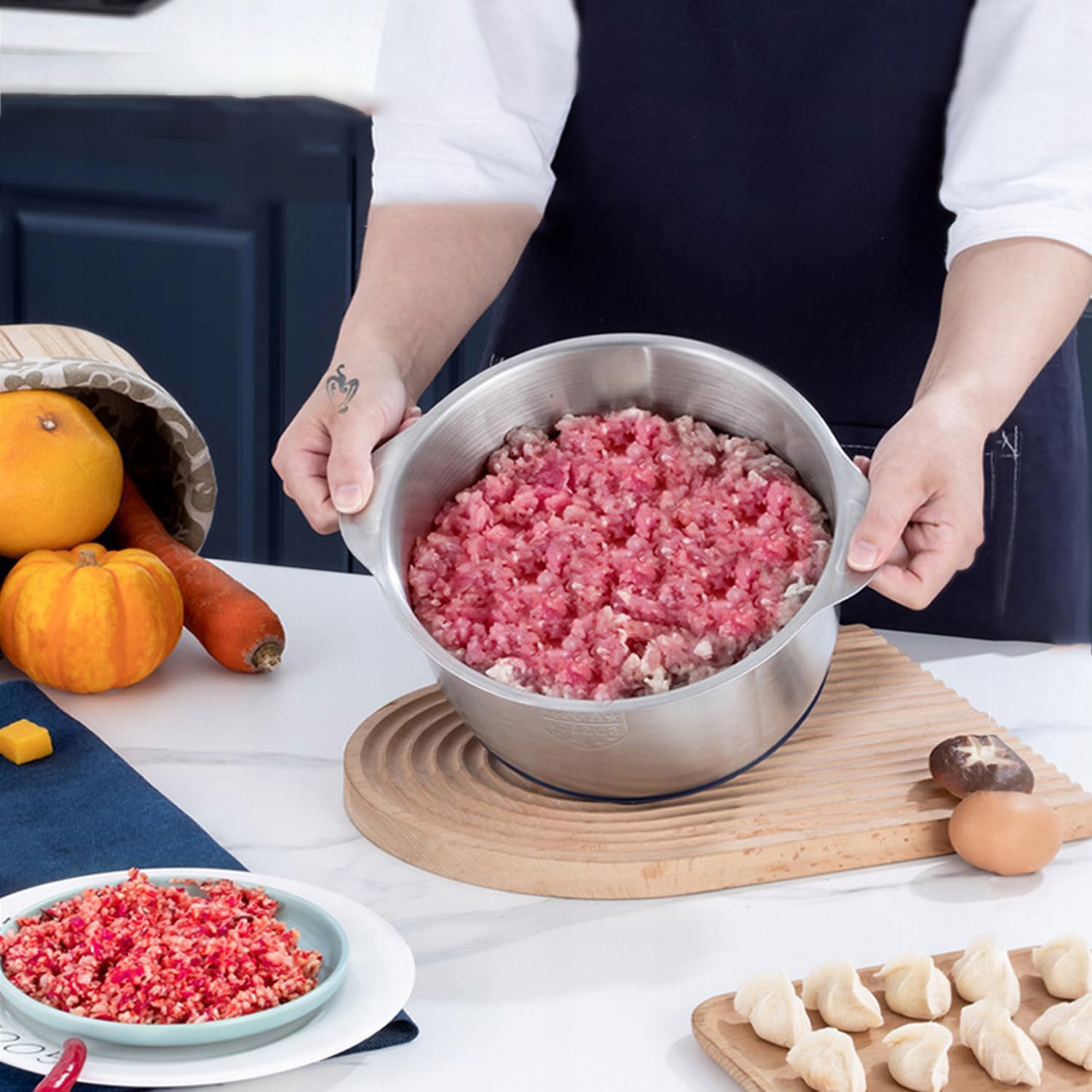 ➡5-литровая чаша из нержавеющей стали h2> - Электрическая мясорубка оснащена 5-литровой миской из нержавеющей стали, которая позволяет готовить вкусные продукты и сэкономить время быстрее.