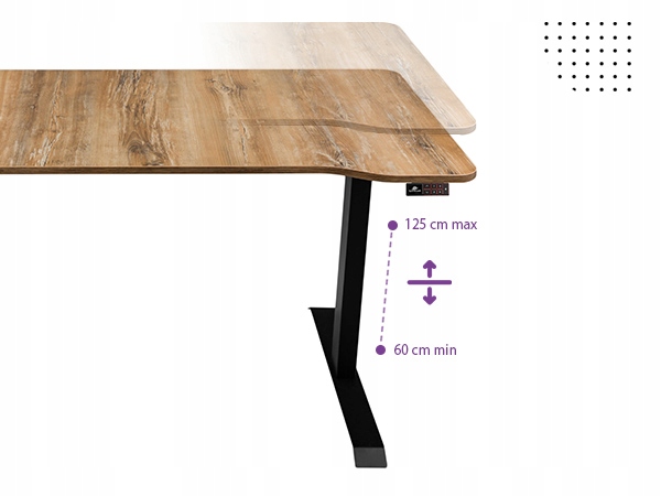 Правильно спроектированный каркас электрического стола гарантирует устойчивость даже на самой большой высоте. Регулируемый по высоте стол позволяет так называемую гибридная работа – мы можем попеременно стоять или сидеть во время работы или учебы. Регулировка высоты в диапазоне 60 – 125 см является идеальным решением, когда за одним рабочим местом работают несколько человек – отрегулируйте высоту столешницы под рост каждого пользователя. Электрический стол – это предмет мебели, который адаптируется к вашим потребностям!