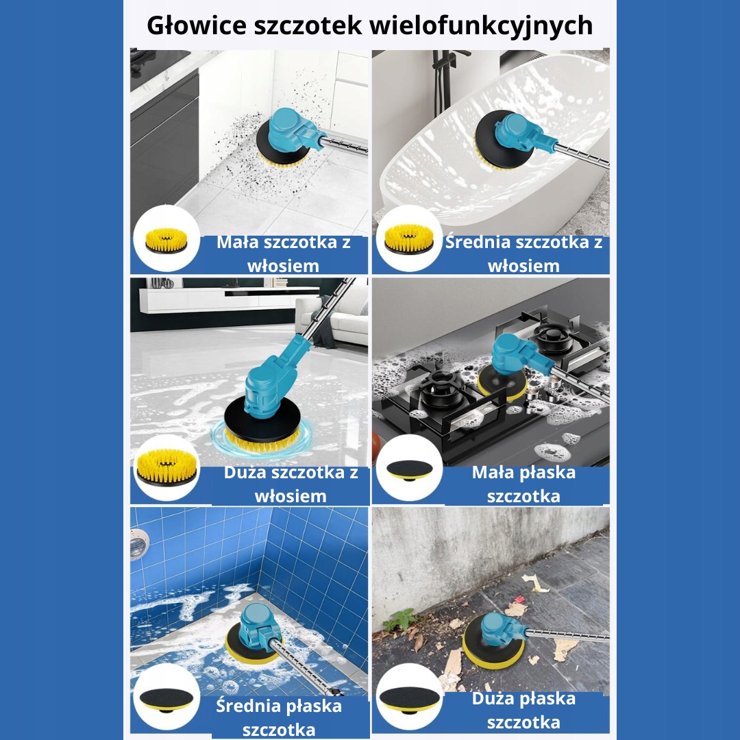 Многофункциональная электрическая чистящая щетка - это мощное и универсальное устройство, которое облегчает ежедневную очистку и очистку различных поверхностей. Благодаря мощному двигателю, эргономичному дизайну и многим функциям, он эффективно удаляет грязь, пятна и пыль. Легкий и прост в использовании, он работает как дома, так и в саду или в гараже.