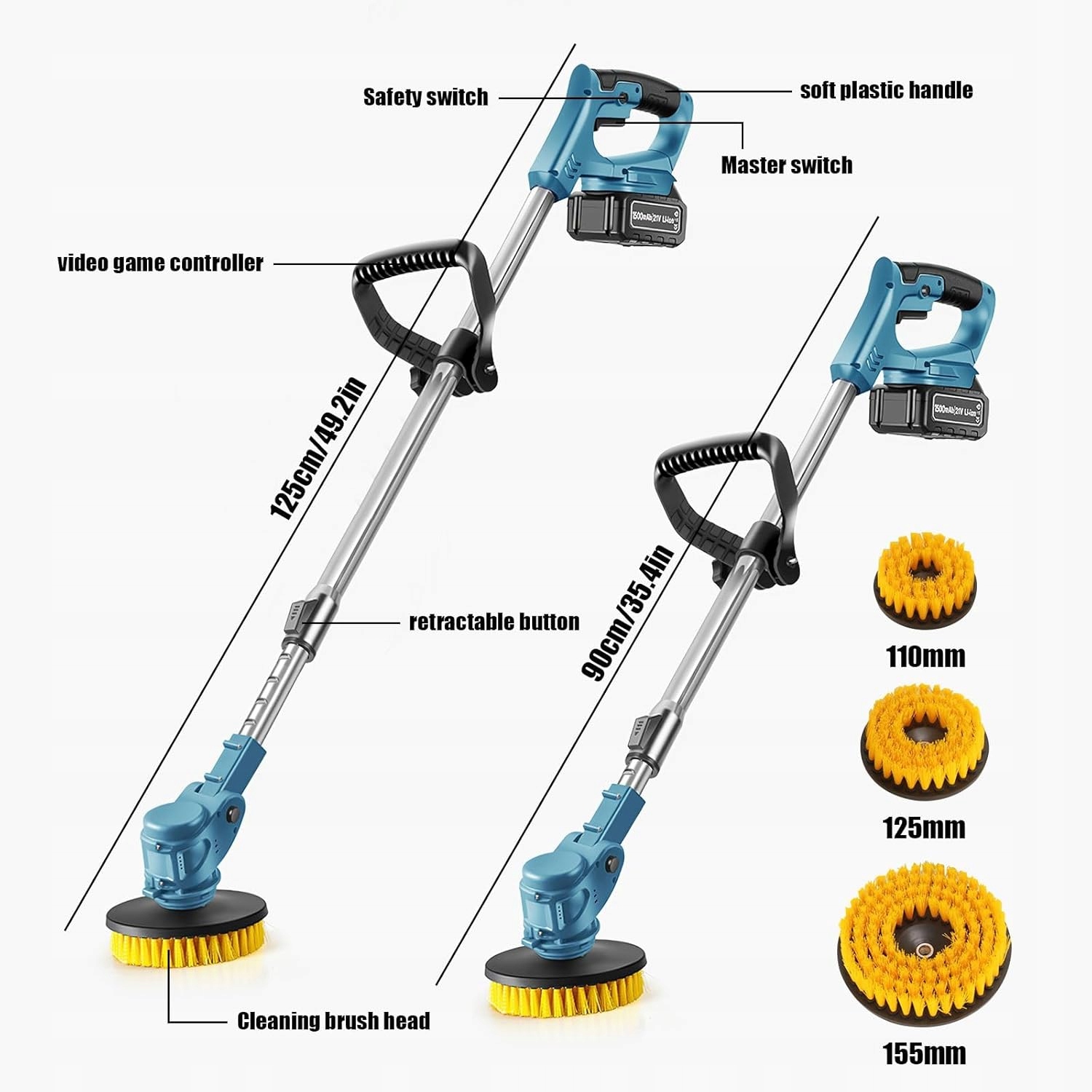 Регулируемая длина - телескопическая труба с длиной от 100 до 135 см позволяет комфортной очистке без изгиба, адаптируясь к различным задачам. использовать.