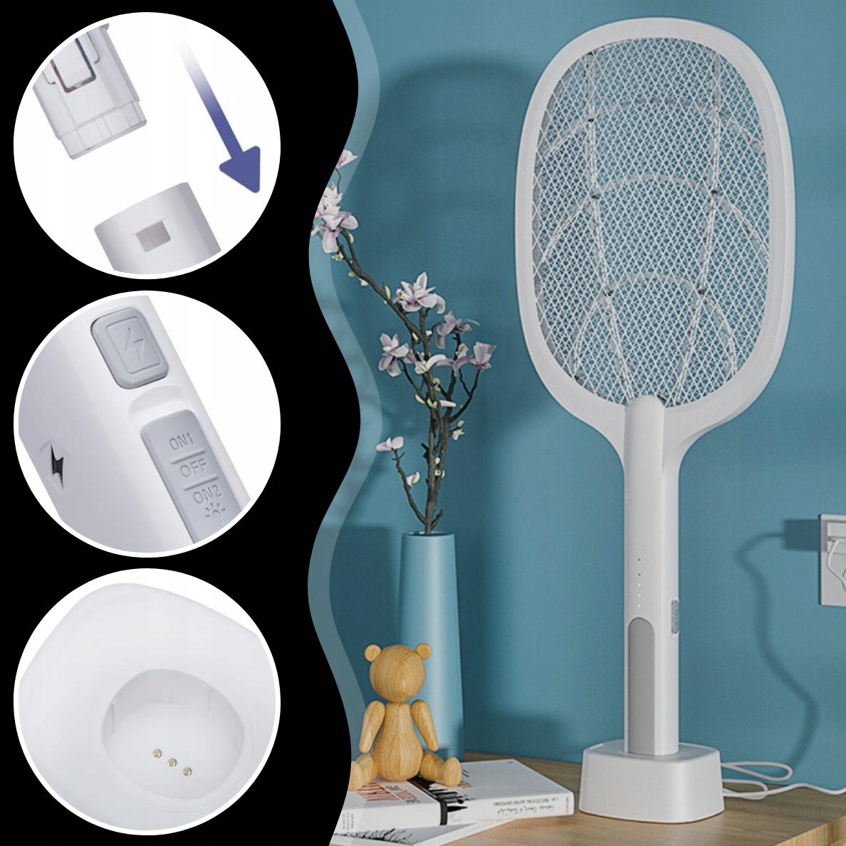 Благодаря прикрепленной подставке с функцией зарядки, лапа может выступать в качестве стационарной инсектицидной лампы, устраняя насекомых без необходимости держать ее в руках. Некоторые пользователи указывают, что отсутствие индикатора заряда может препятствовать мониторингу батареи.